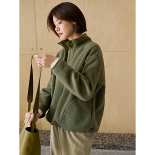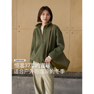 云上生活 高领半拉链柔糯奥粒绒外套秋冬卫衣 绿森林外套