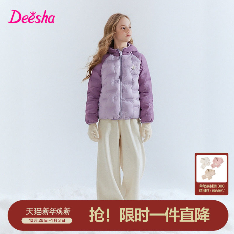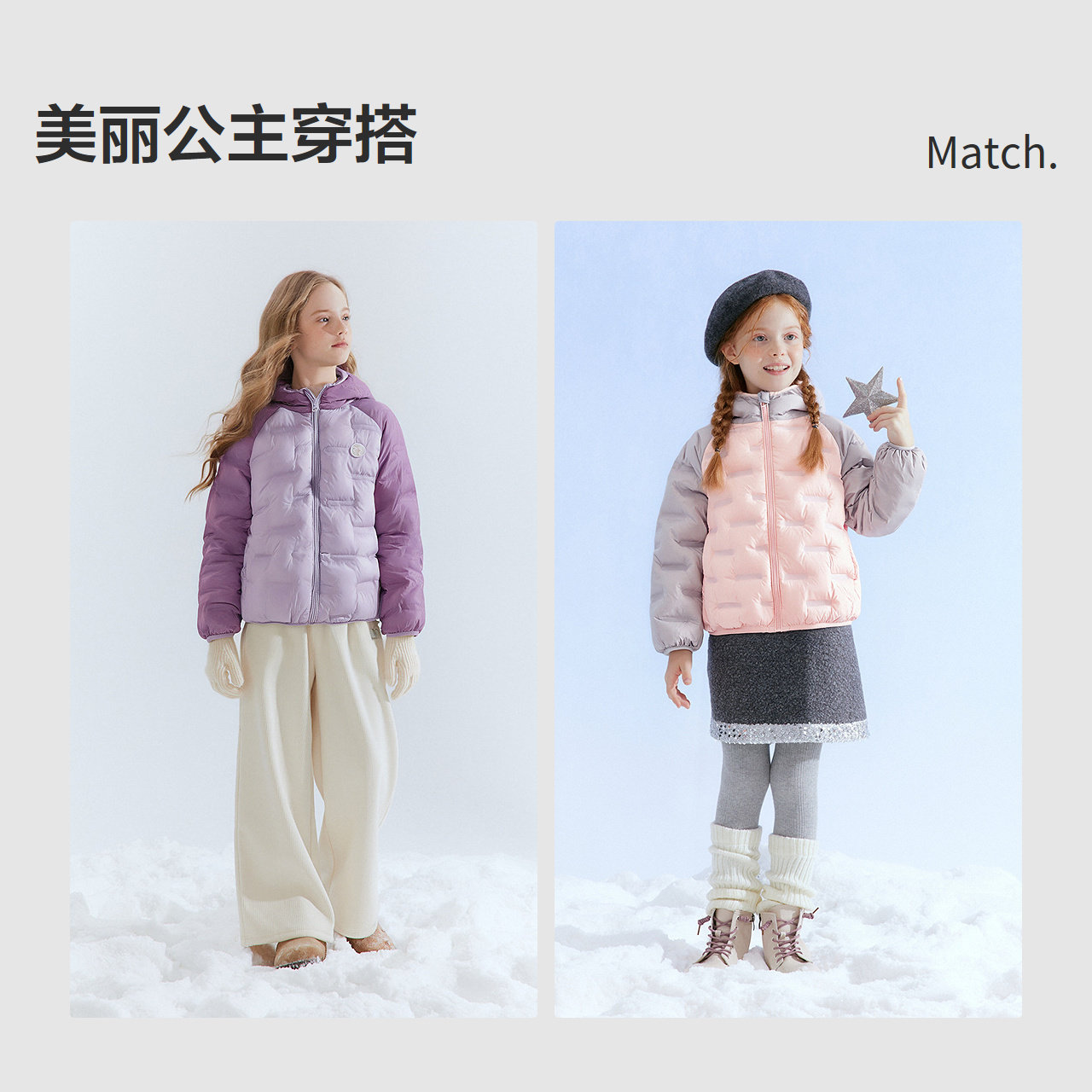 大童女孩儿童撞色外套 新款 笛莎官方旗舰童装 女童轻薄羽绒服秋冬季