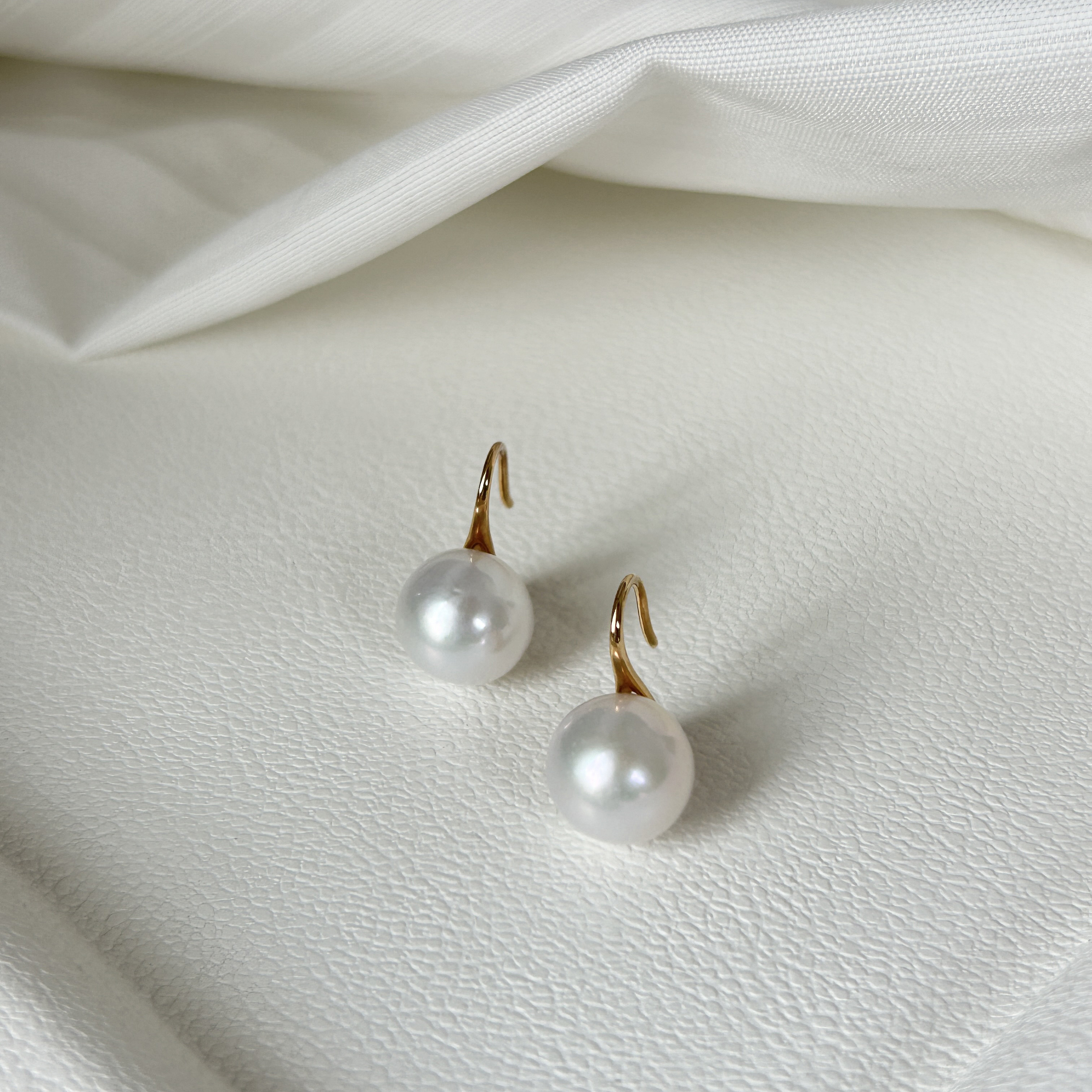 京润珍珠云逸淡水有核珍珠耳钉10 11mm圆形大颗珍珠耳饰生日礼物P
