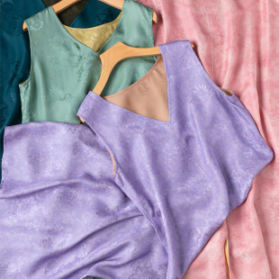 可前后双面四穿 奢级真丝提花花罗圆领V领开叉背心连衣裙长裙新