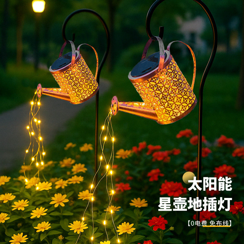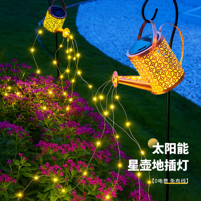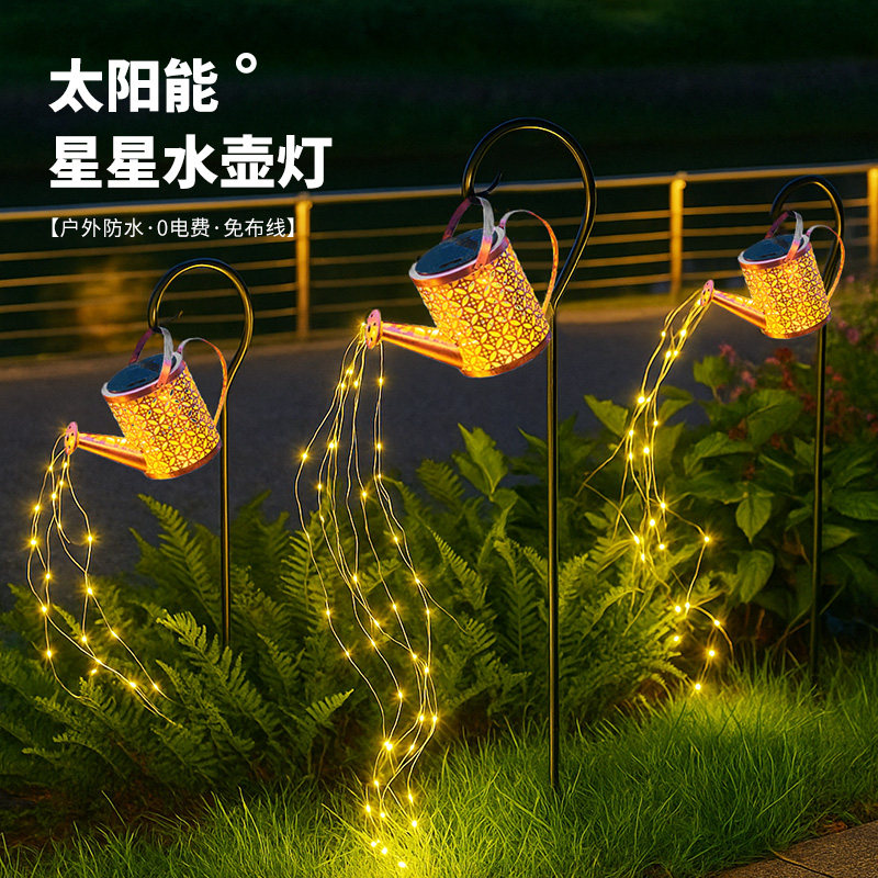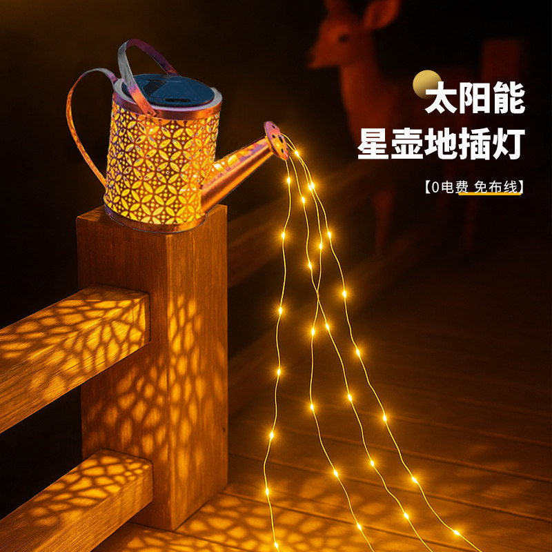 户外庭院摆件太阳能水壶流水灯花园装 饰摆件民宿网红小院造景布置