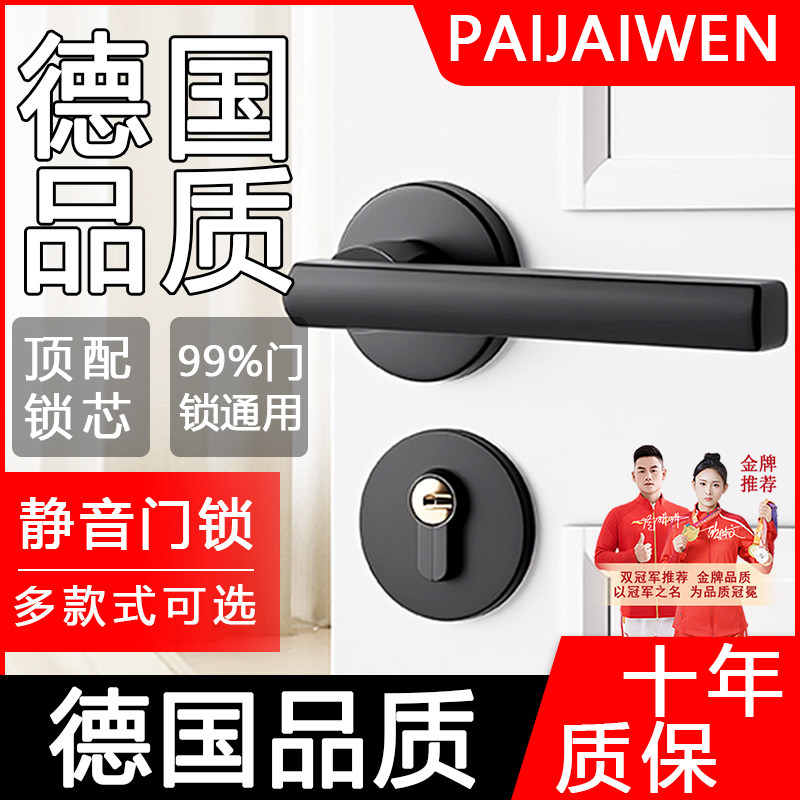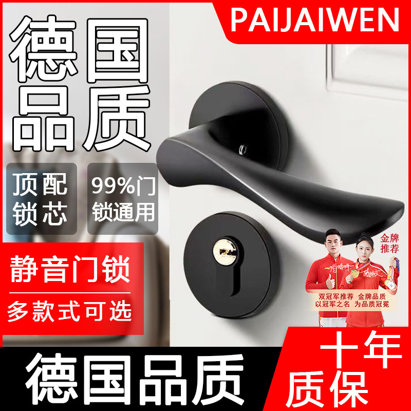 室内机械门锁锁体卧室房间木门家用通用型执手不锈钢消声静音锁舌