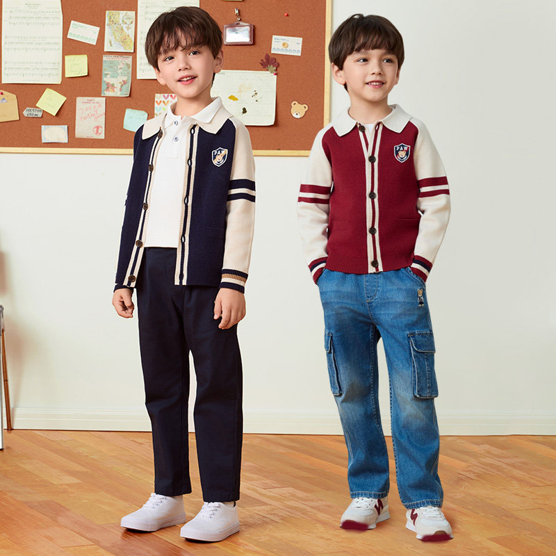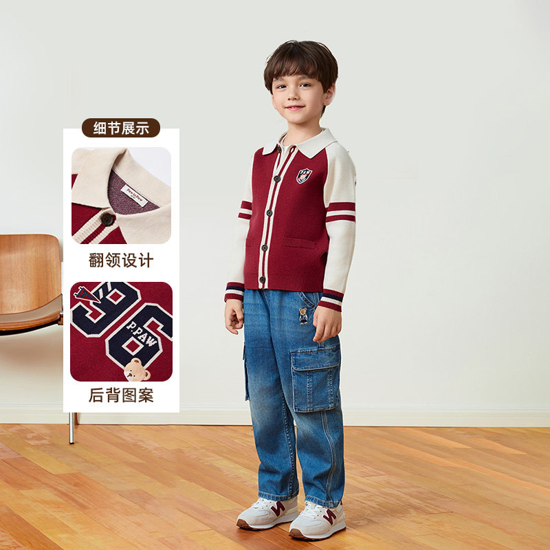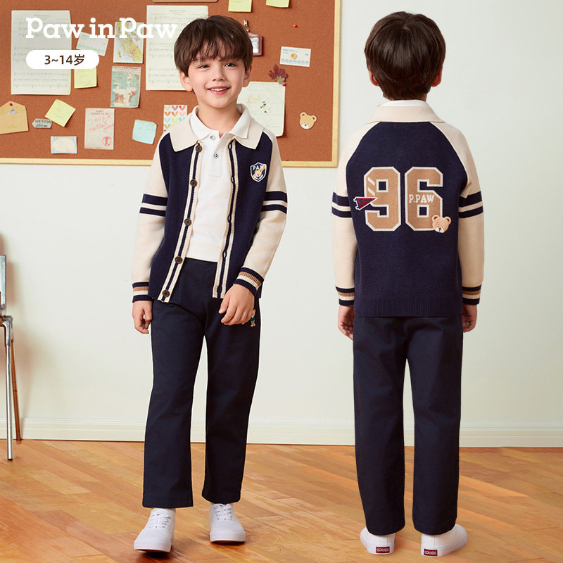 男童翻领毛衣开衫 新款 外套学院风 25年秋季 PawinPaw卡通小熊童装