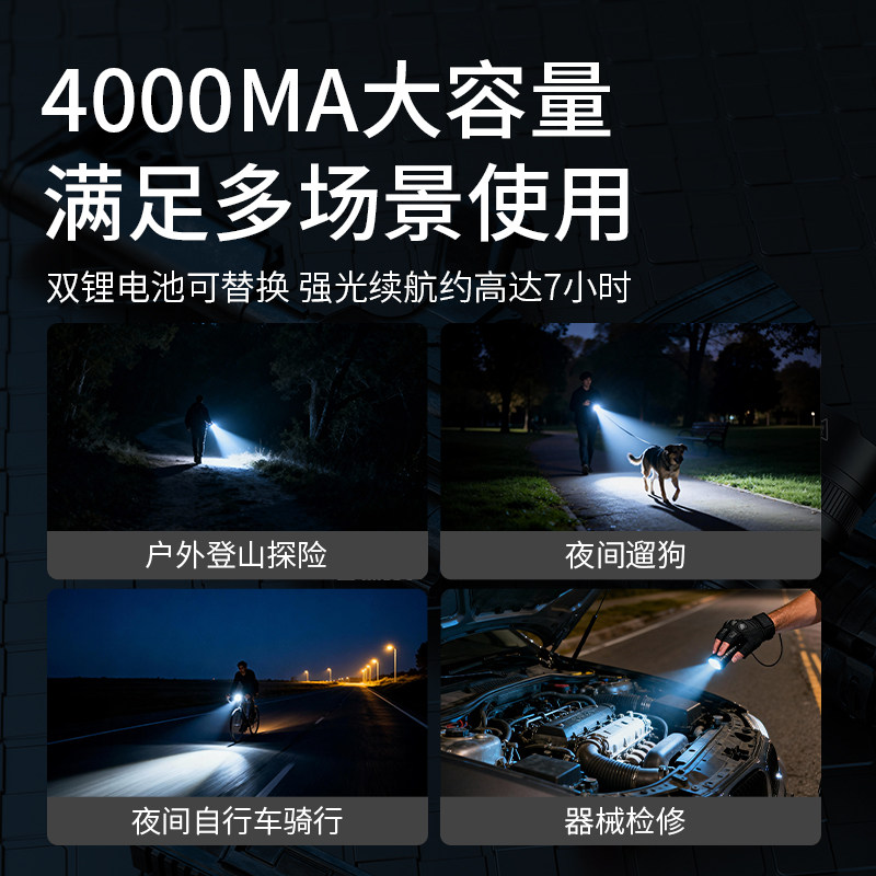 手电筒2025新款 强光远射户外专用超长续航便携家用镭射应急工作灯