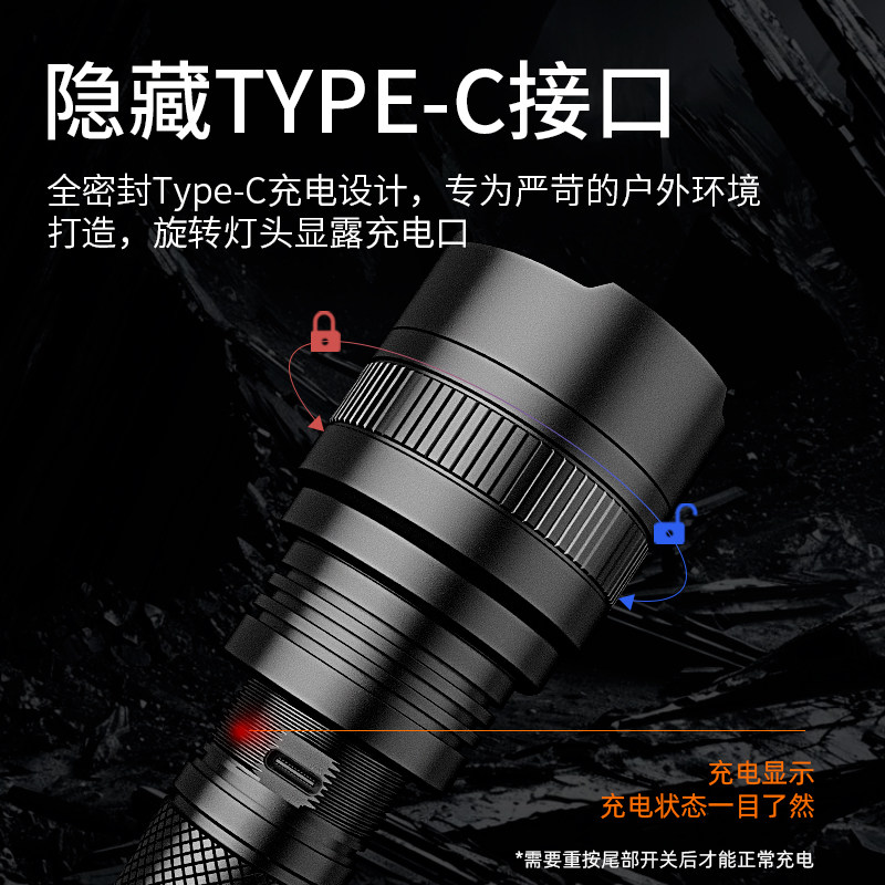 手电筒强光充电长续航锂电户外变焦远射家用应急小便携多功能耐用