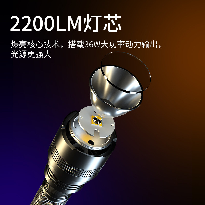 手电筒强光充电式 长续航远射超亮户外小型便携家用大功率大容量灯