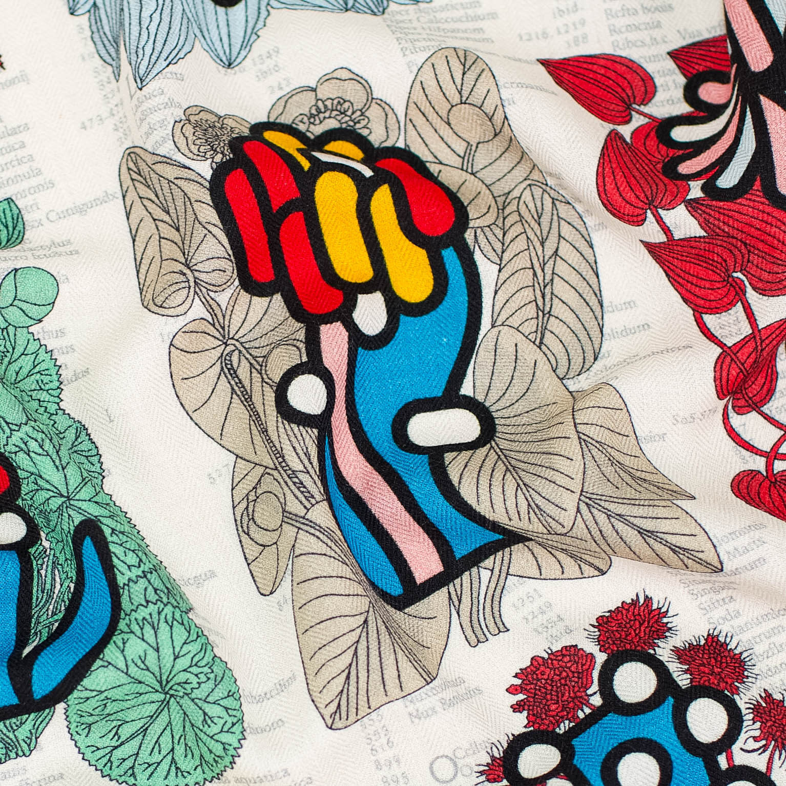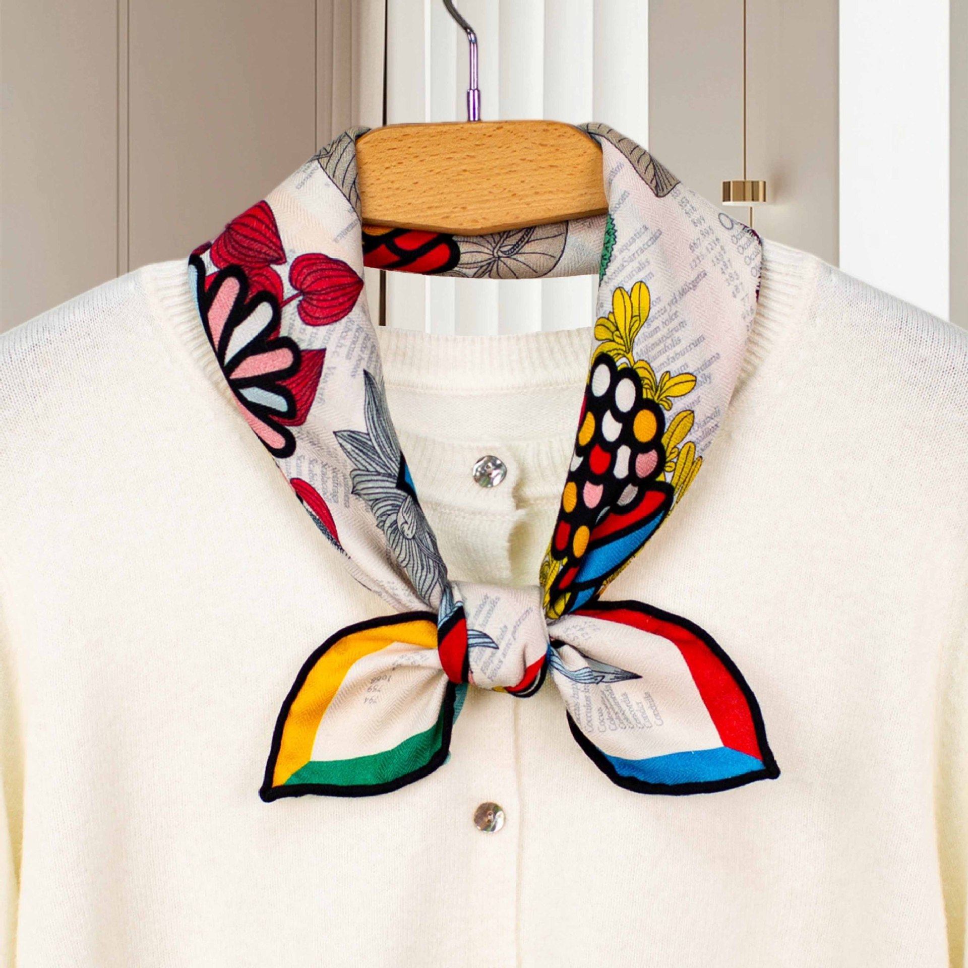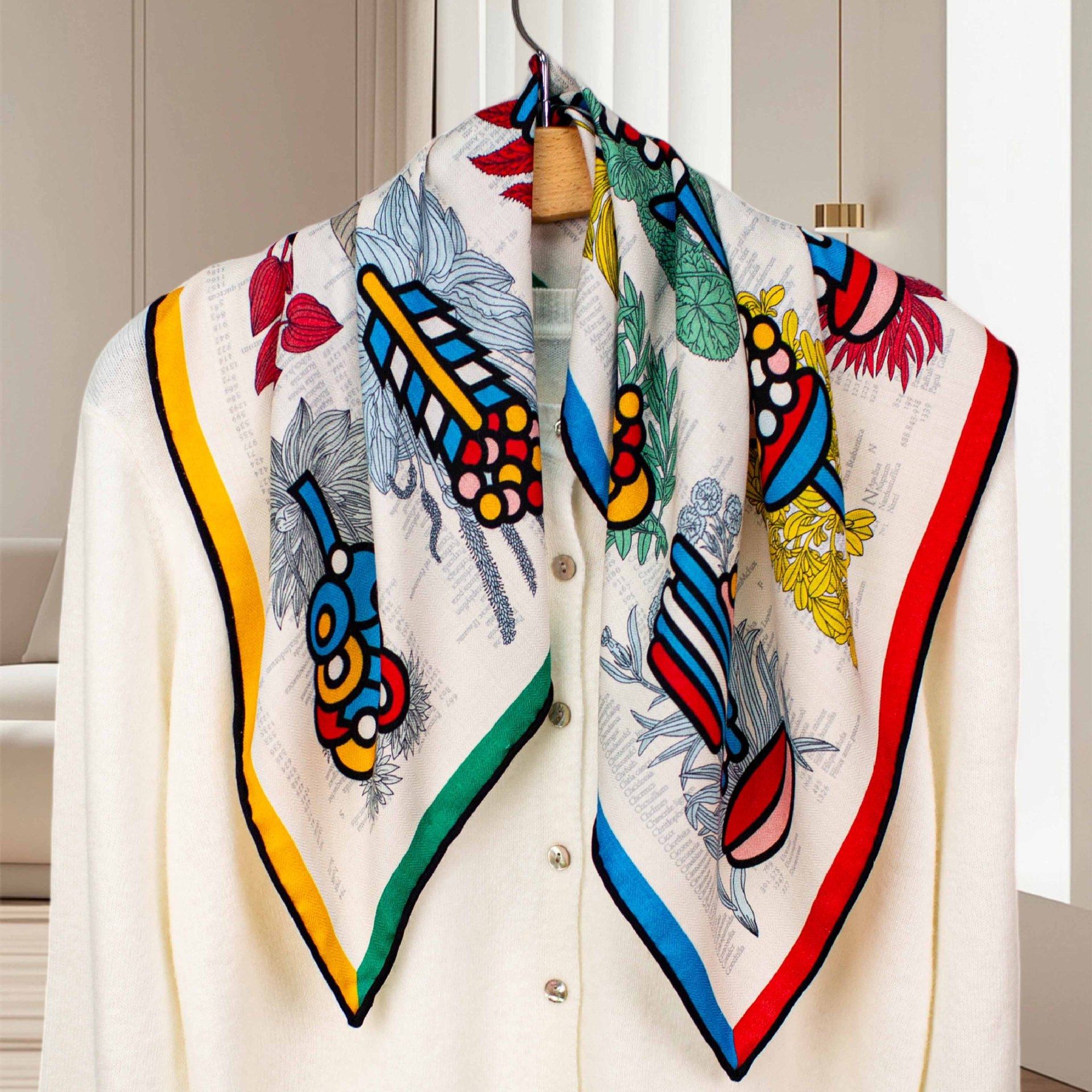 桑蚕丝真丝羊毛双面丝毛时尚 时尚 新款 百搭70中方巾 植物图鉴