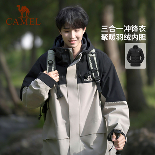 骆驼户外雨神冲锋衣男三合一羽绒服冬季 防水外套女三防旅游滑雪服