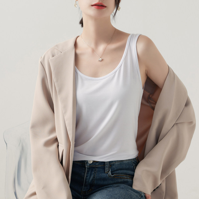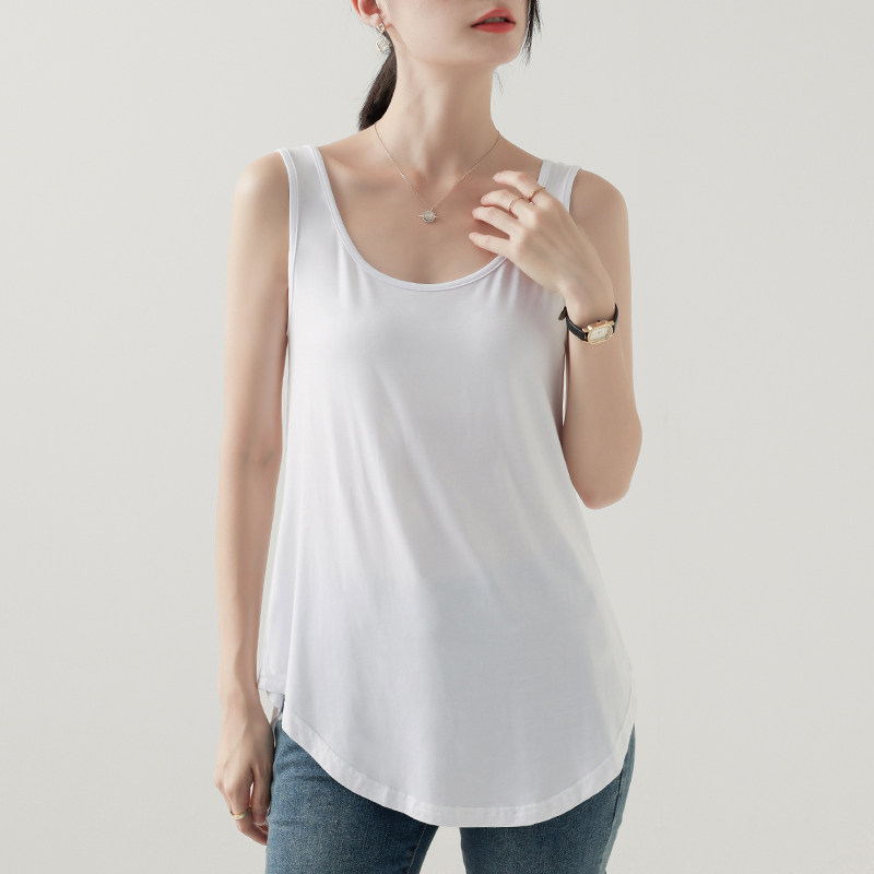 莫代尔背心吊带女白色宽松夏圆弧下摆大码 上衣外穿显瘦薄 内搭无袖