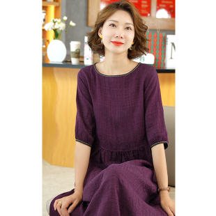高端杭州桑蚕丝中老年裙子女 香云纱真丝连衣裙妈妈装 2025夏季 新款
