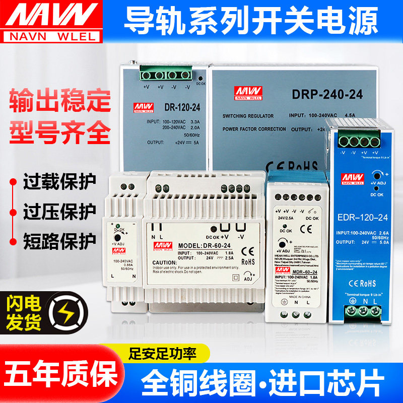 LRS台湾明纬220转24V直流DC12开关电源盒350变压5伏100适配器MW48