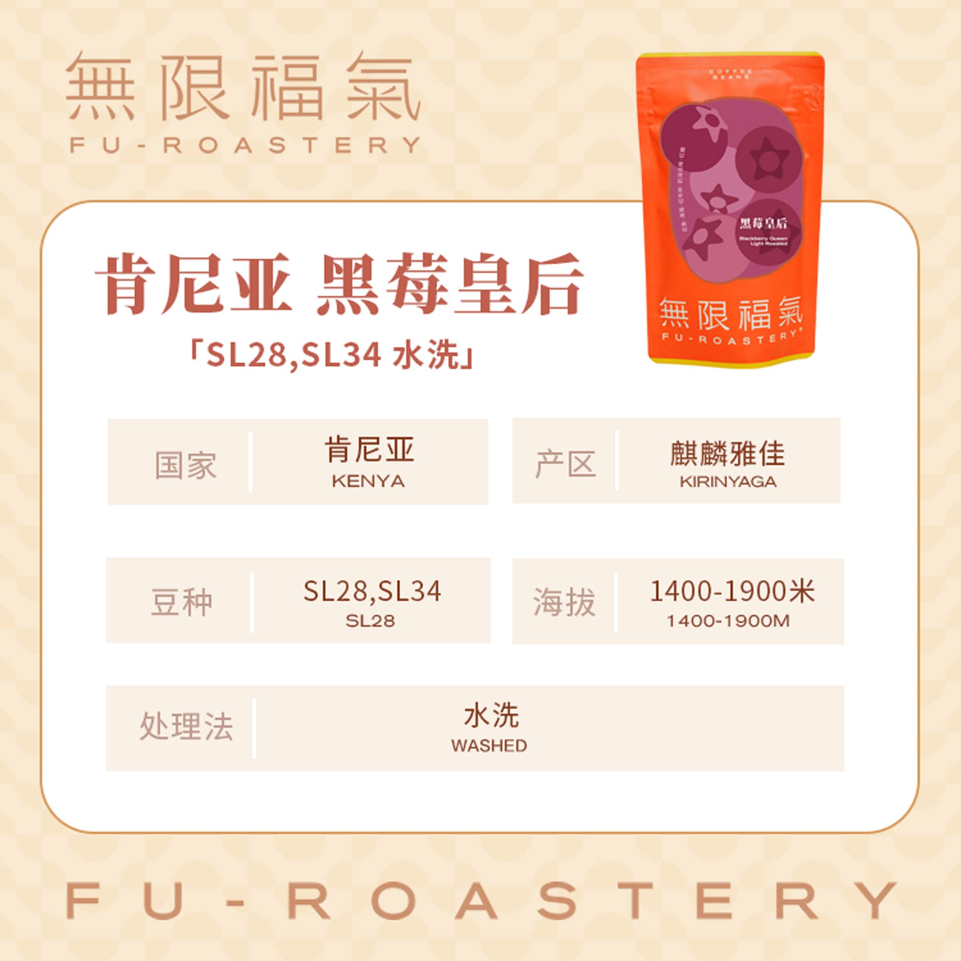 无限福气水洗肯尼亚AA黑莓皇后精品手冲咖啡豆新鲜浅烘培