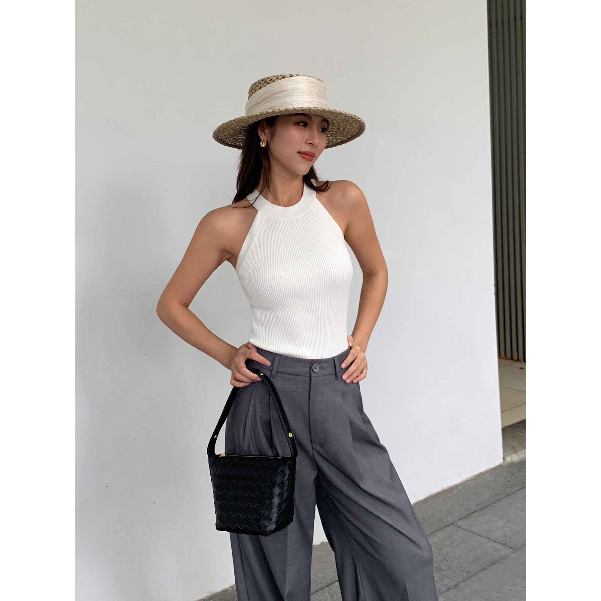 修身 NEVA 新款 白色挂脖背心女外穿2025夏季 内搭露背吊带上衣