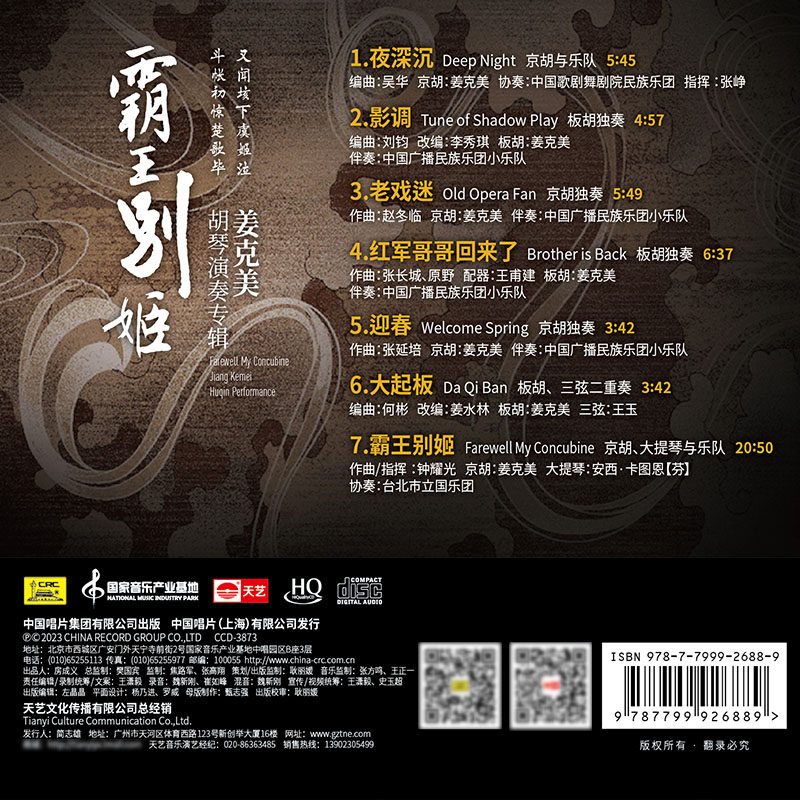 限量发烧车载音乐CD碟片唱片 HQCD头版 天艺唱片姜克美 霸王别姬