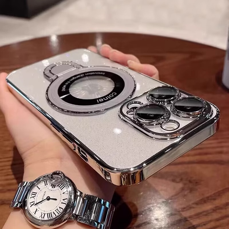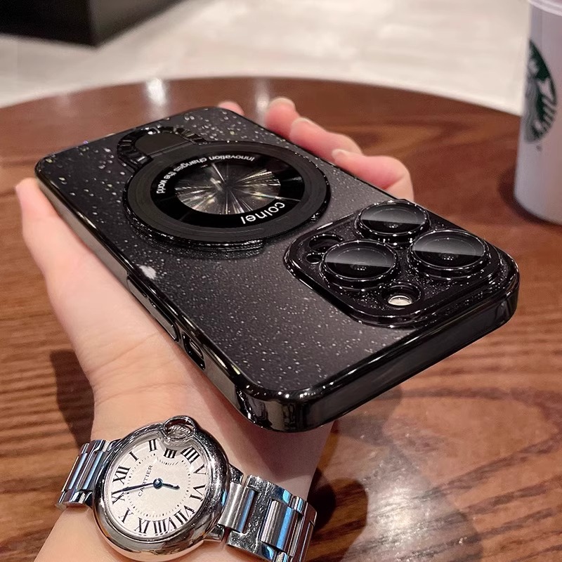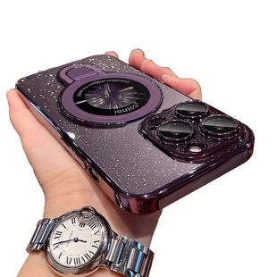 磁吸壳手机壳支架款 透明闪粉12超薄高级感男女网红镜头膜适用自带 16苹果15iphone14promax防摔保护套13po新款
