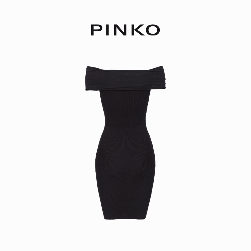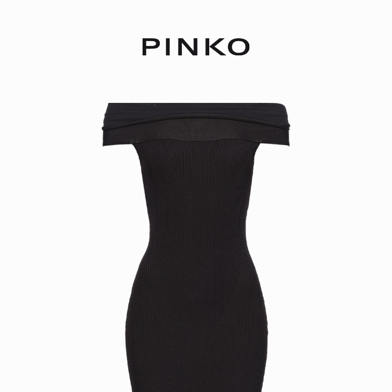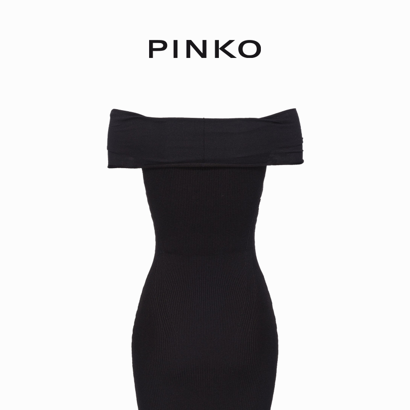 PINKO女士一字肩连衣裙收腰气质通勤款 小众设计感102797A170