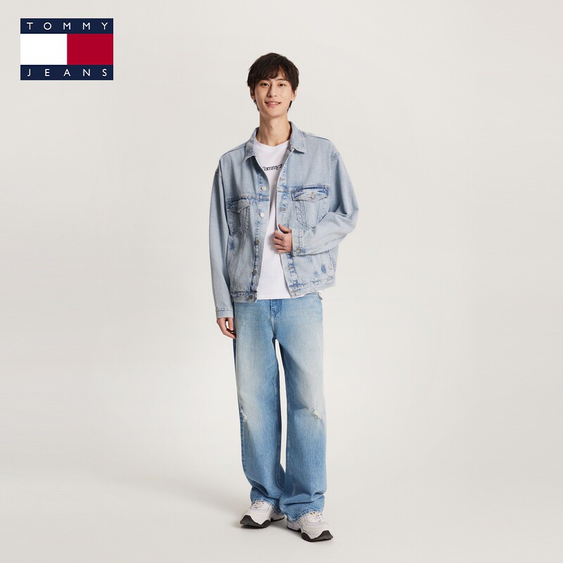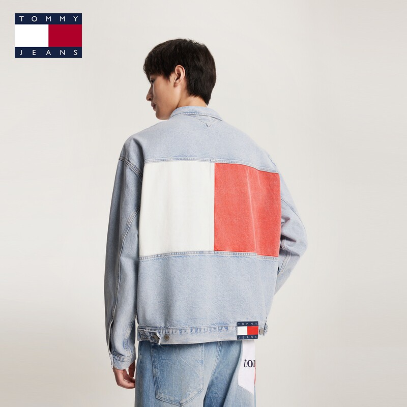 后背拼色宽松牛仔外套 Tommy秋冬男女情侣潮流美式 复古做旧