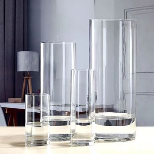 水培植物玻璃瓶子透明直筒圆柱形花瓶简约绿萝花盆白掌水养缸容器