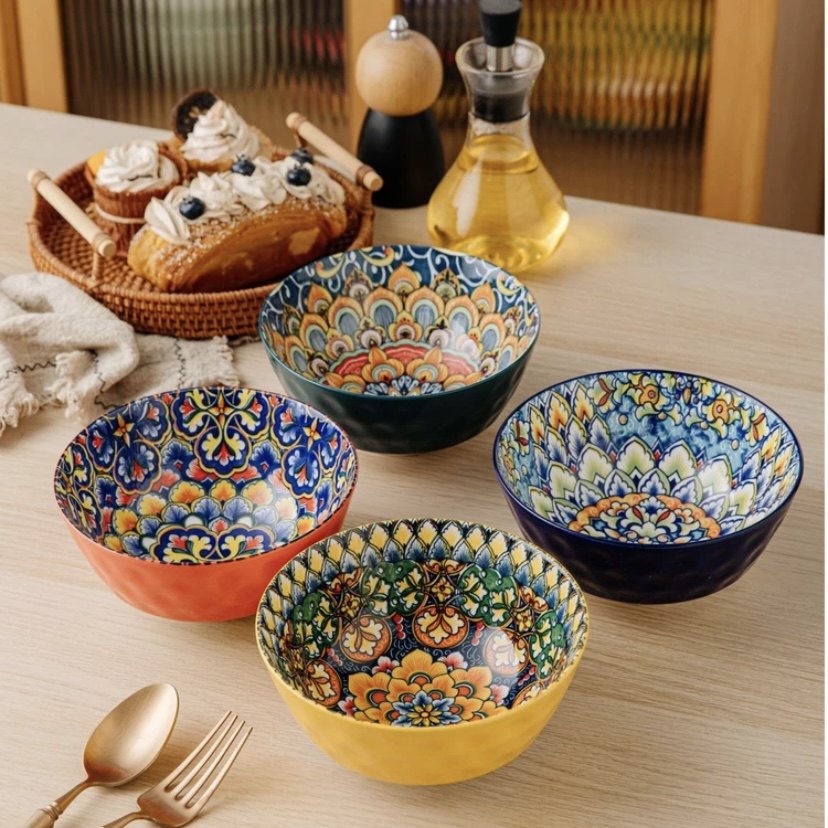 maji双耳碗家用汤碗泡面碗具沙拉盘子陶瓷餐具饭碗水果酸奶碗