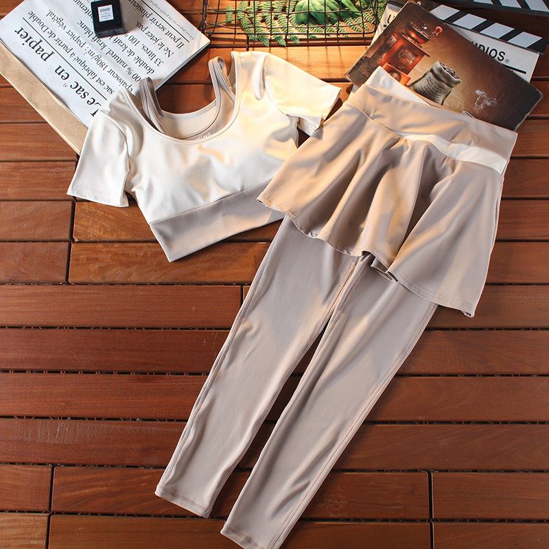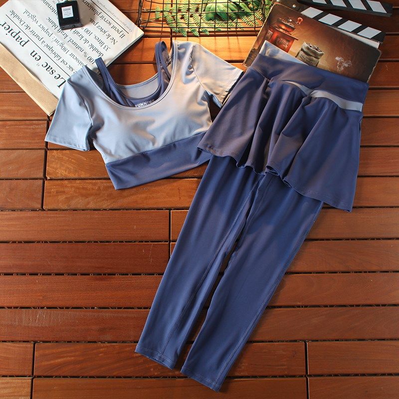 瑜伽微喇运动长裤 女上衣 子屁帘裙普拉提舞蹈健身服羽毛球训练套装