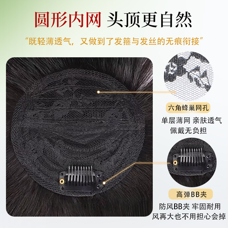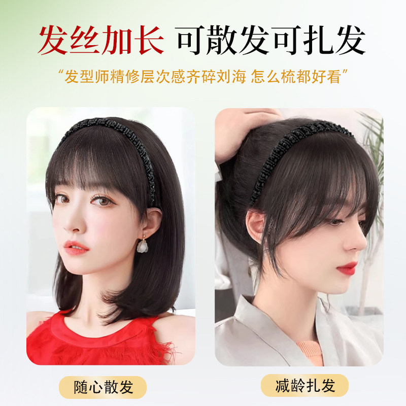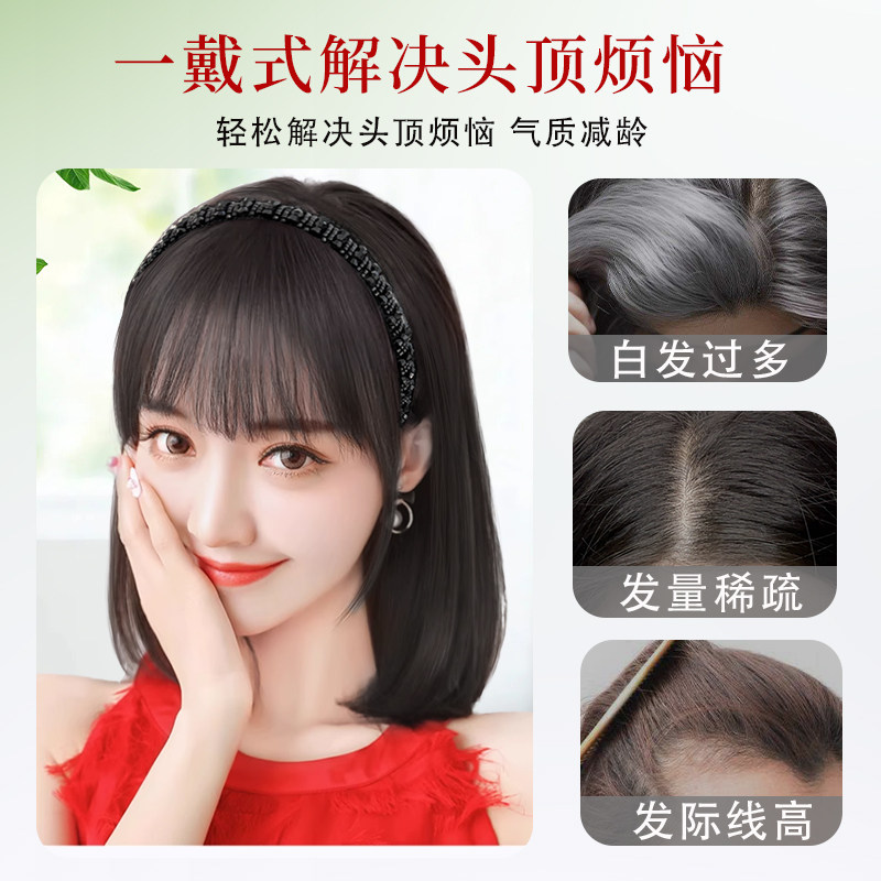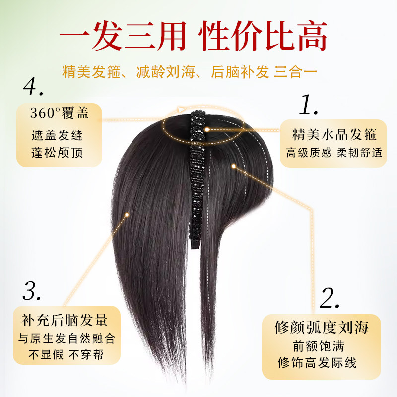 发箍刘海假发一体式 补发片全真发黑钻发箍直发片遮白发头顶齐刘海