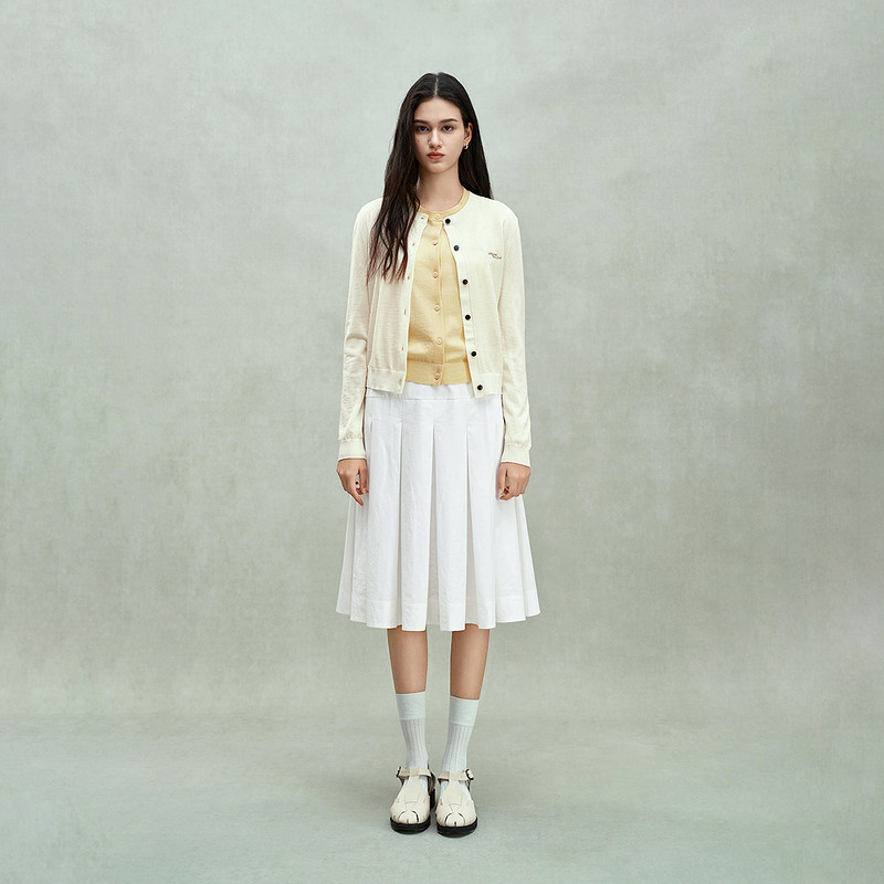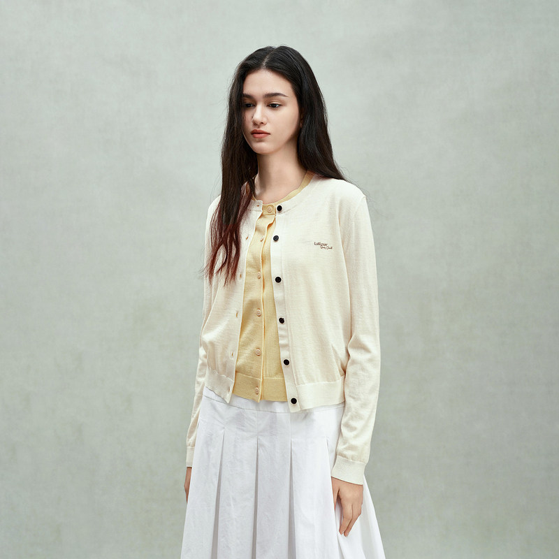 新品 上衣印花2025夏季 100%羊毛轻薄针织外套女开衫 OCHIRLY欧时力