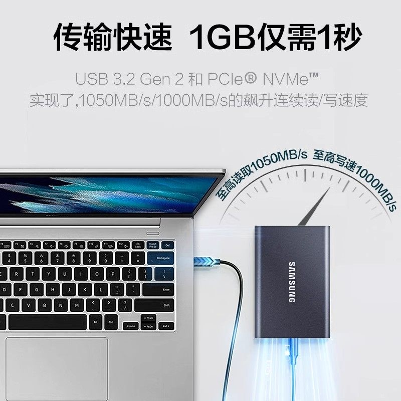 三星T7移动2t固态硬盘1TB USB3.2电脑安卓手机加密外置存储t9PSSD