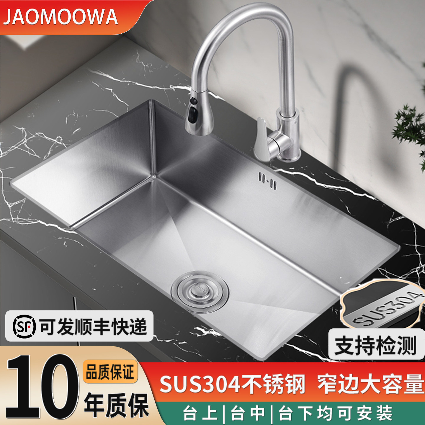 正宗sus304不锈钢水槽大单槽小尺寸吧台岛台下盆厨房手工洗菜盆