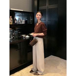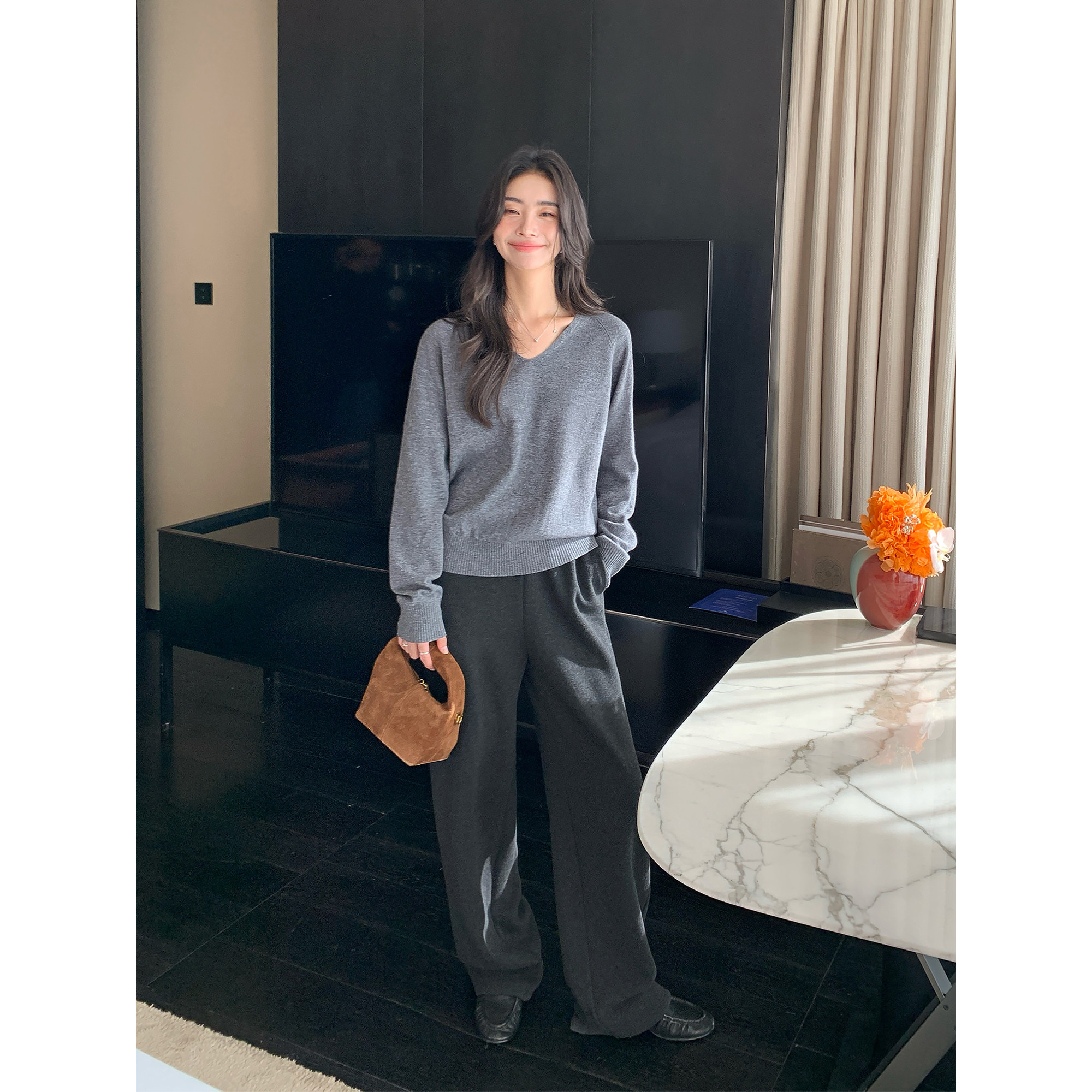 女秋冬宽松直筒针织阔腿裤 软糯加绒休闲裤 高个子加长 Lin Maven