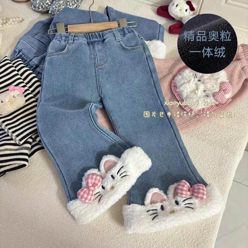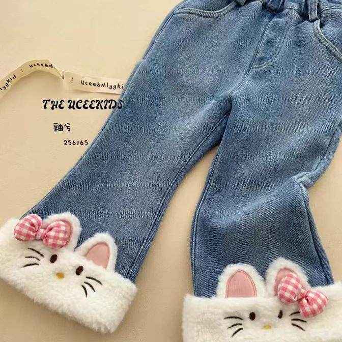 大童一体绒儿童直筒女童保暖阔腿裤 加绒加厚冬季 子 女童牛仔裤 童装