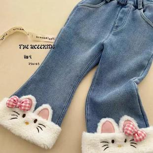 宝儿加绒厚休闲百搭保暖直筒长裤 新款 子 冬季 大耳象女童洗水牛仔裤