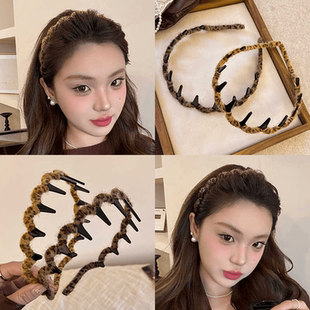 甜酷豹纹带齿波浪发箍女秋发根蓬松神器洗脸压发防滑头箍发卡头饰