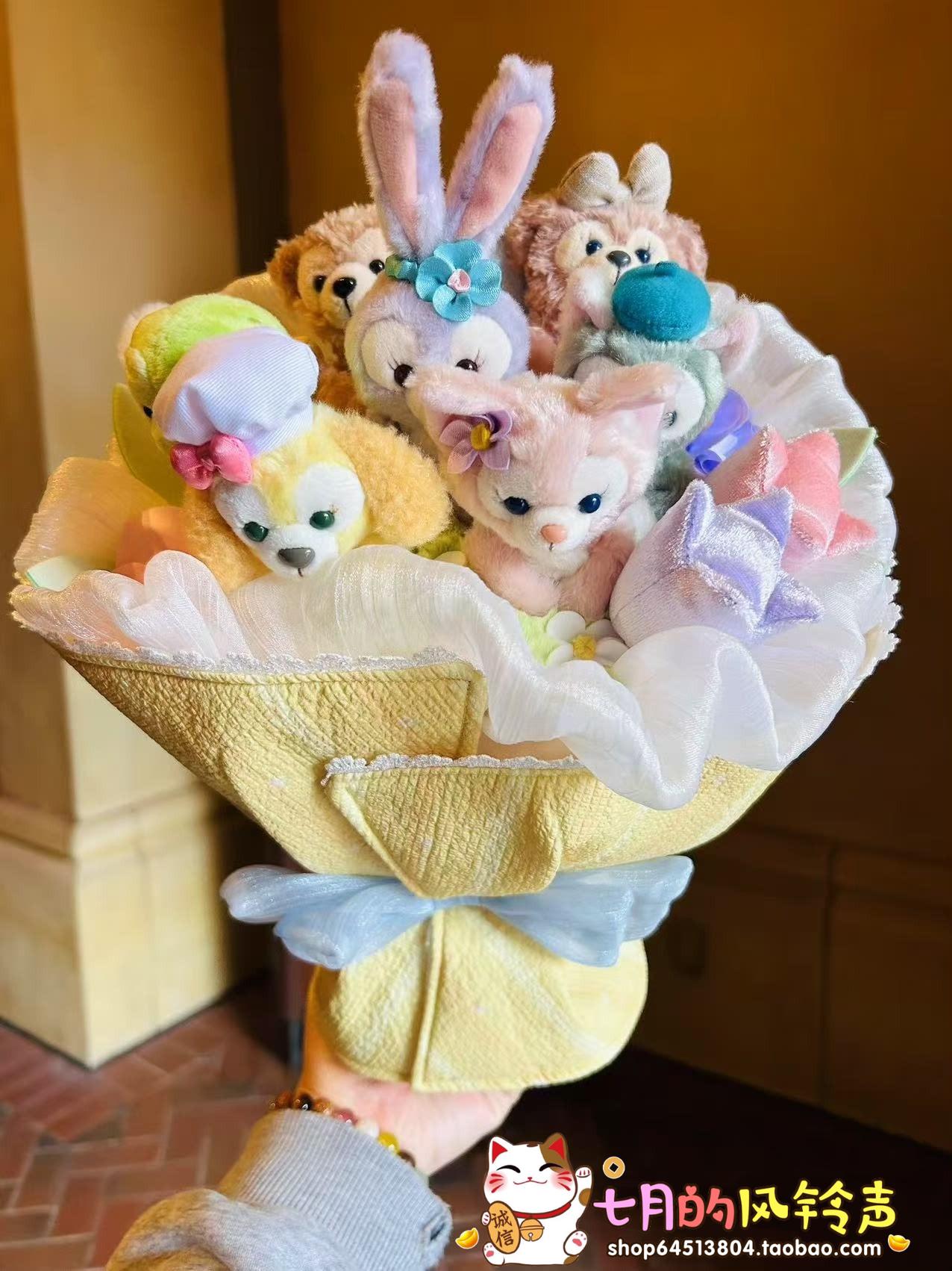 上海迪士尼国内代购 达菲和朋友们毛绒花束七宝公仔花束婚礼捧花