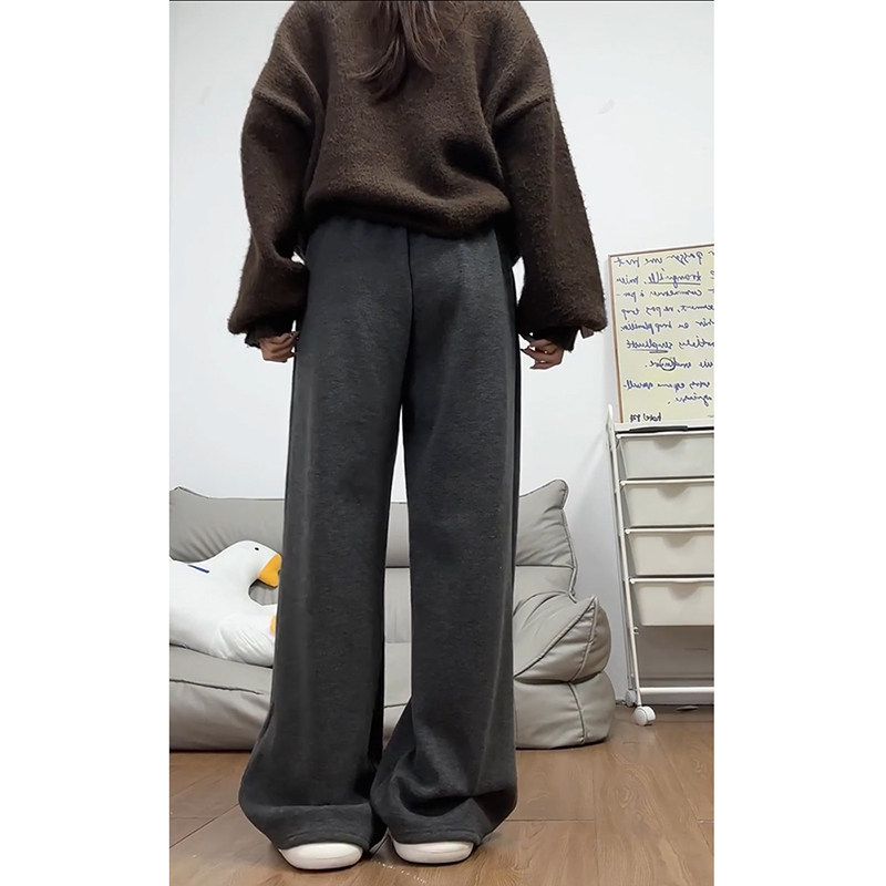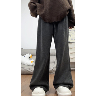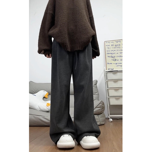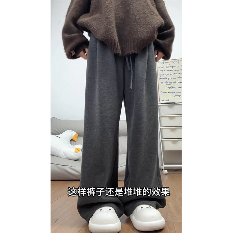 宽松垂感梨形身材显瘦直筒裤 加绒胖mm大码 子 女冬季 灰色糯米休闲裤