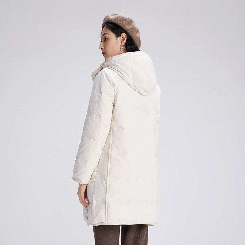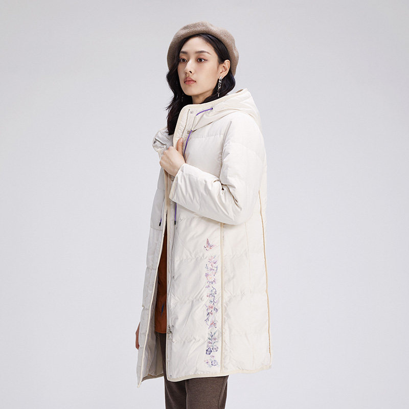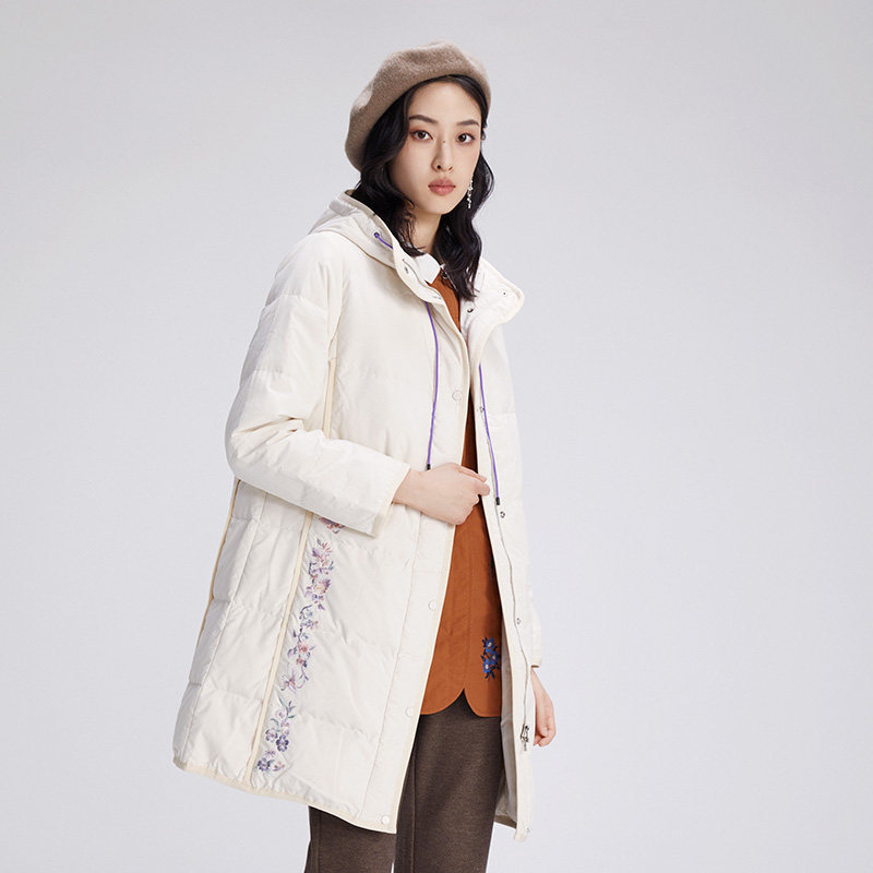 秋冬鸭绒中长简约绣花休闲外套FGGD5083 2024新款 渔女装 羽绒服女款