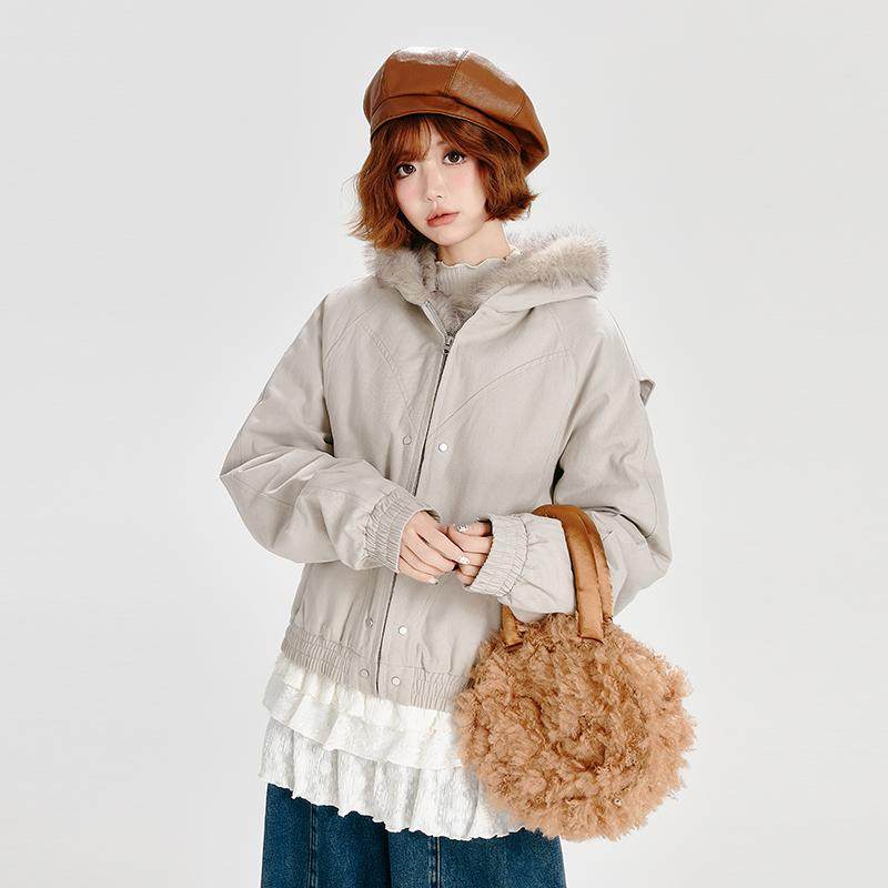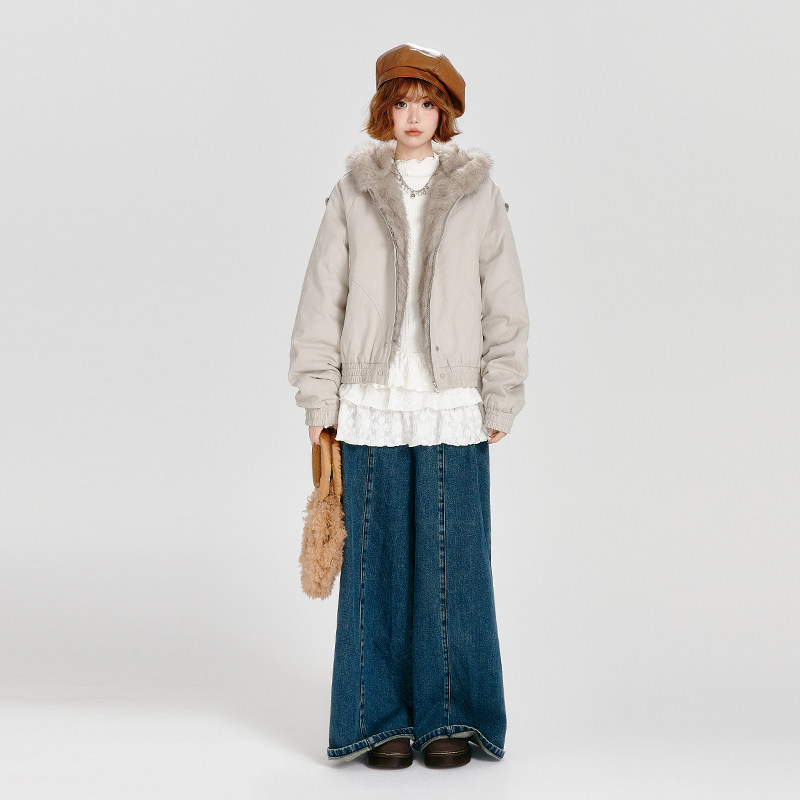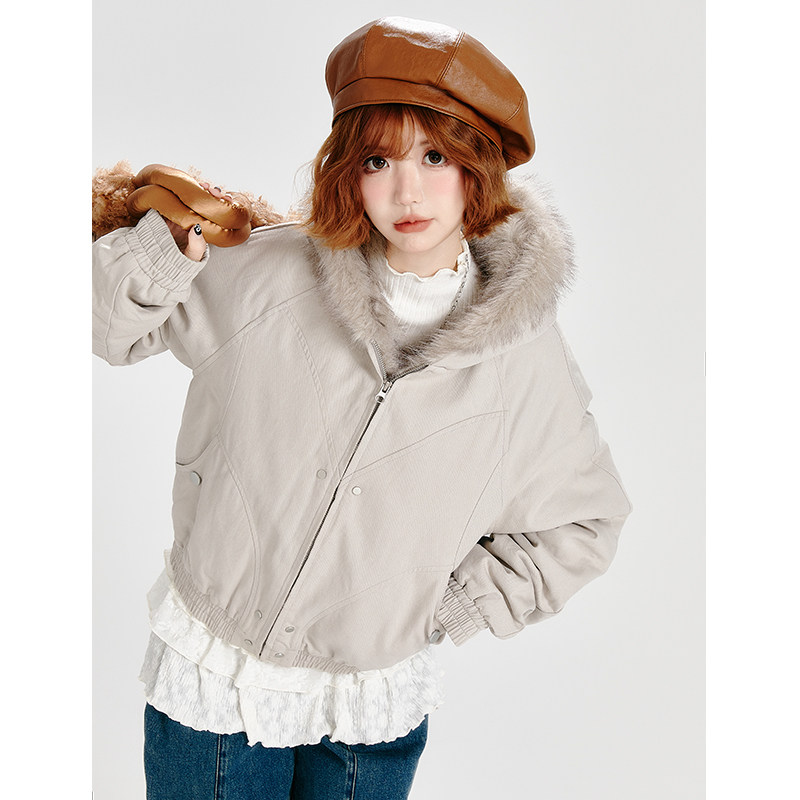 复古短款 超好看美式 小个子棉服女高级感毛领棉袄外套 新款 2025冬季