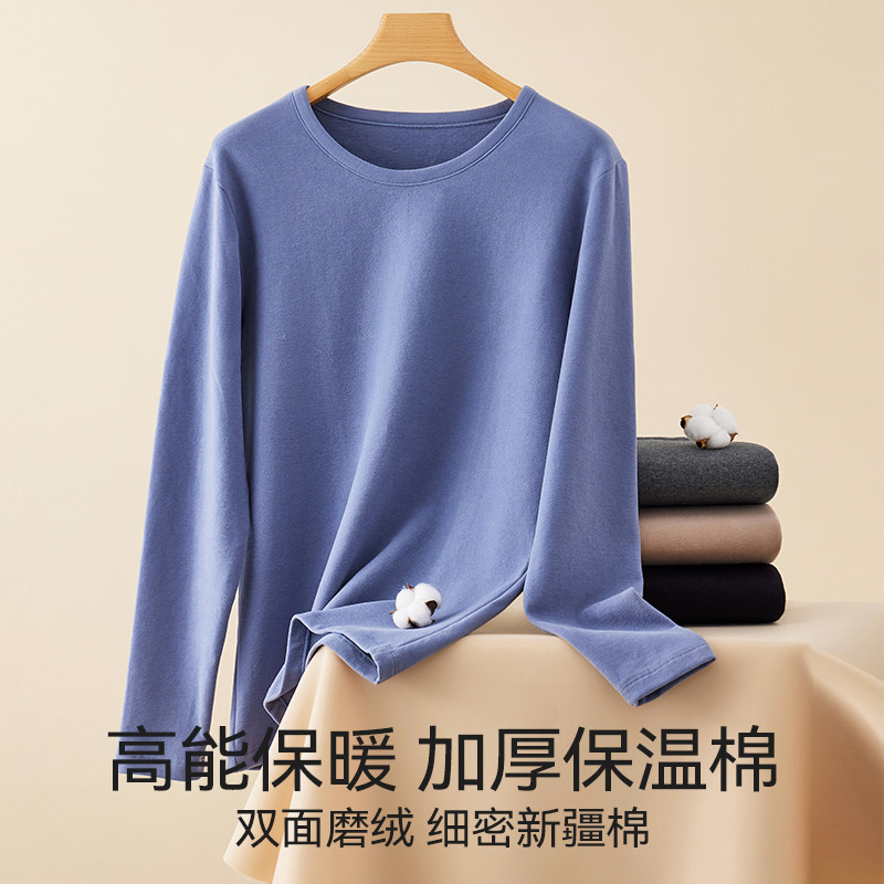 舒适百搭打底衫 新款 t恤男女保暖上衣秋冬季 拇指白小T加绒加厚长袖