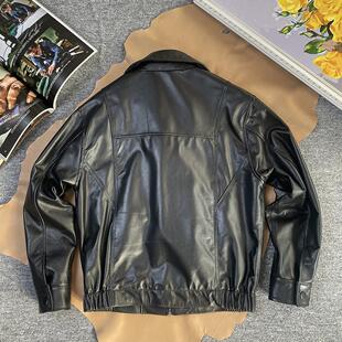 高级复古皮夹克羊皮翻领皮衣真皮棒球服男宽松港风行政外套90年代