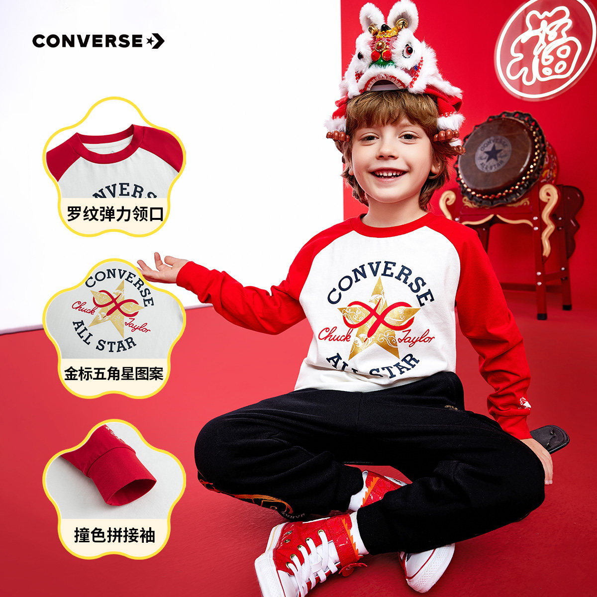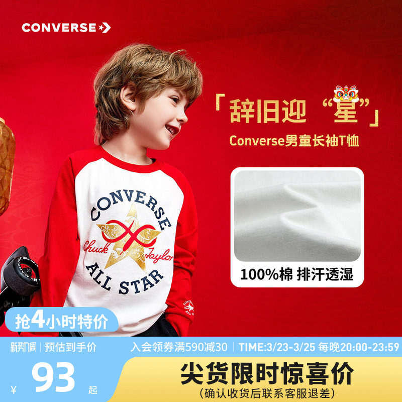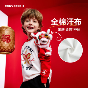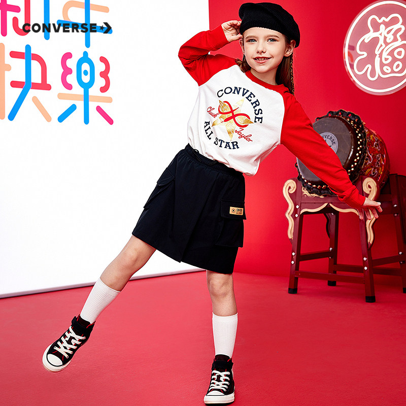CNY新年系列 打底衫 匡威童装 T恤春中大童拼接袖 红 男女童长袖