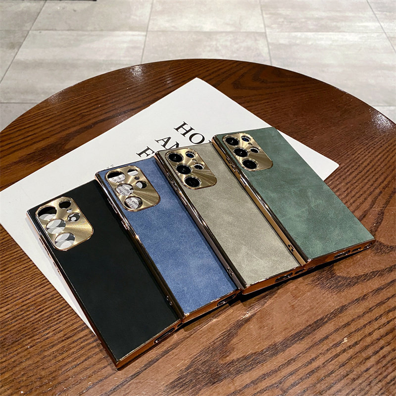 复古轻奢皮质电镀羊巴皮金属镜头圈适用三星s24ultra手机壳s23ultra硬壳s25s24保护壳s22ultra全包s25ultra男