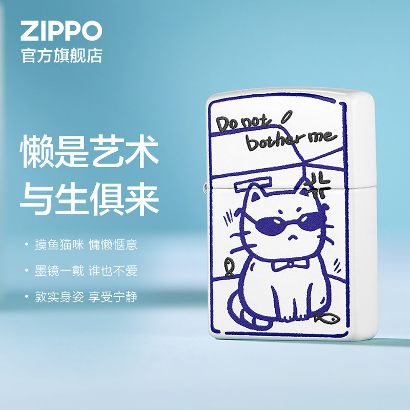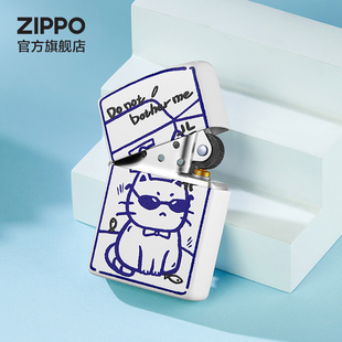 ZIPPO官方旗舰店之宝摸鱼猫咪防风煤油打火机正品 送男友圣诞礼物