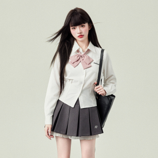 收腰白色衬衣甜美上衣春秋季 花铃太太新款 女修身 衬衫 内搭 学姐长袖