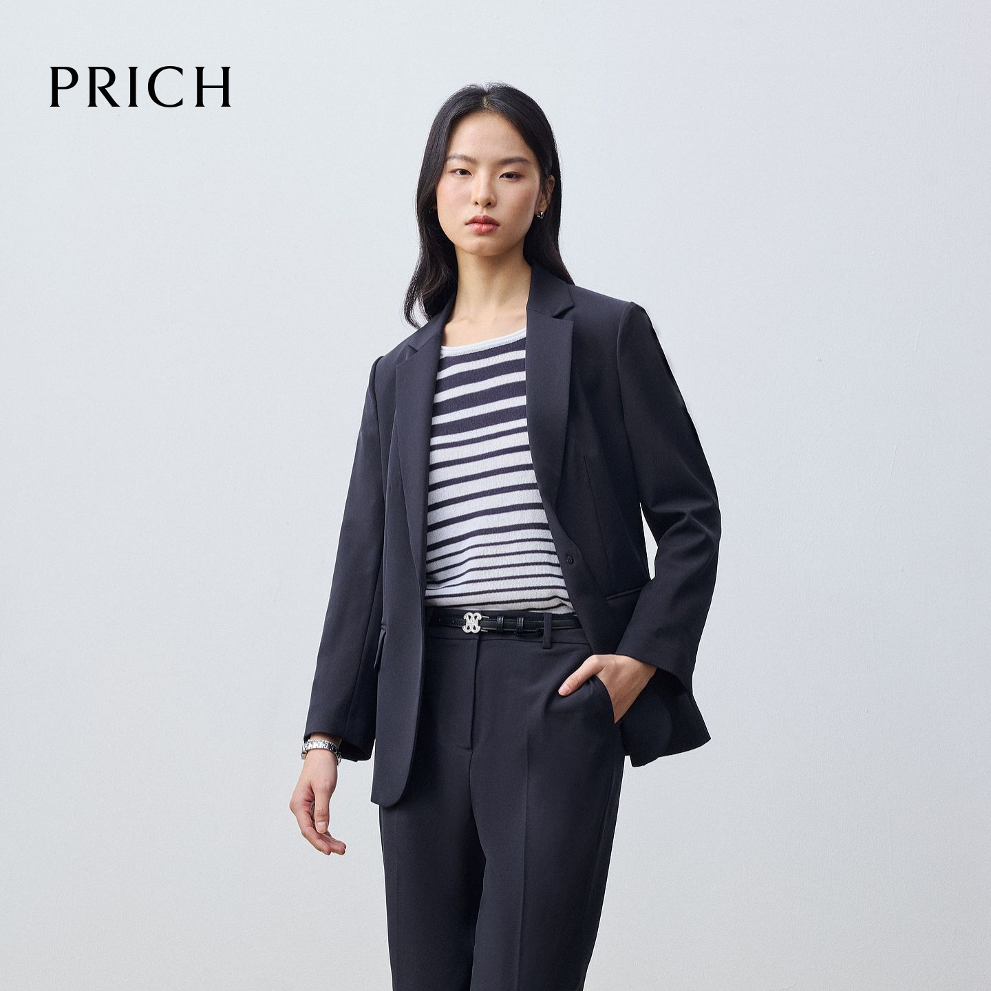 气质平驳领通勤外套女 春季 PRICH简约大气一粒扣西装 套装