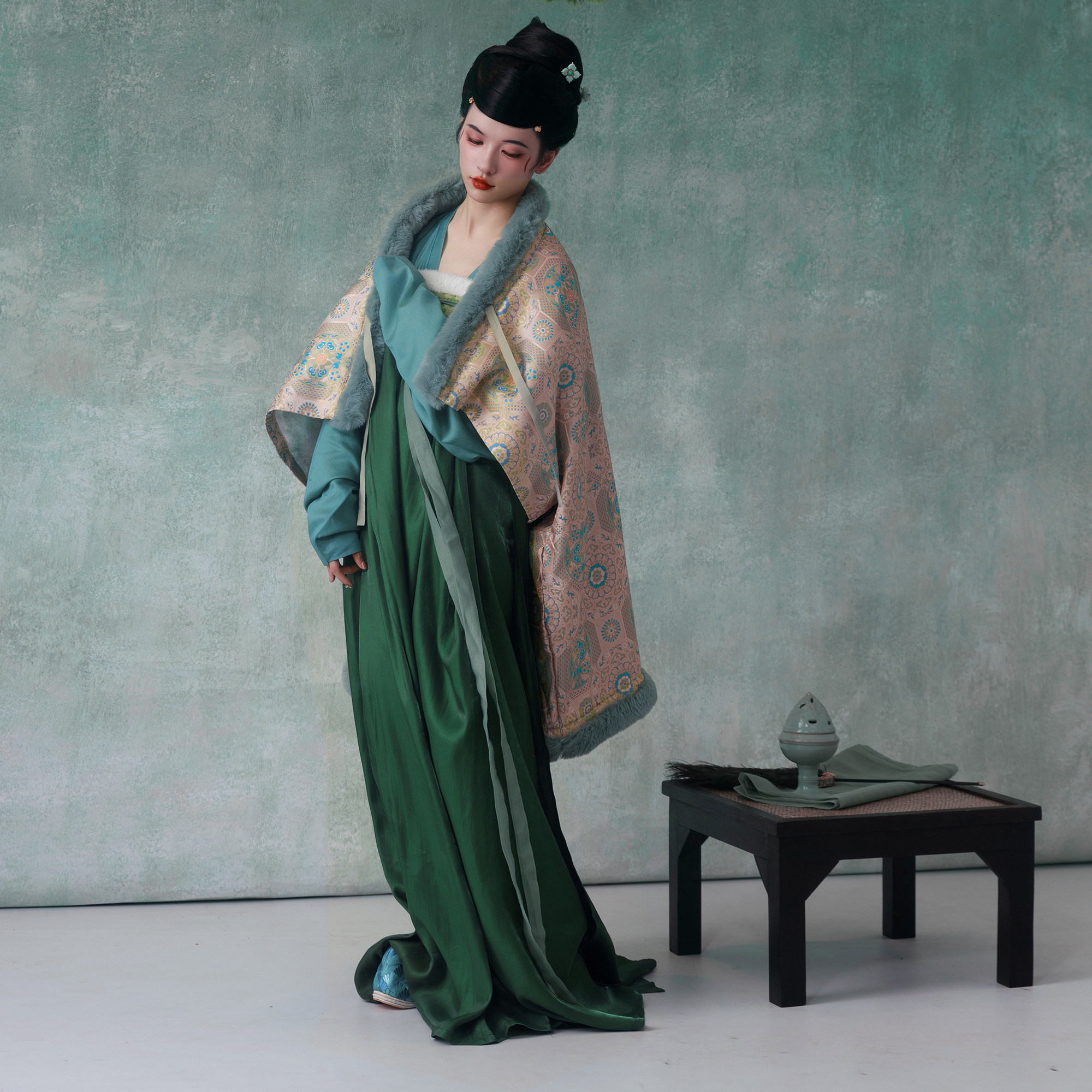 秋冬汉服 明制立领对襟袄织金马面裙套装 无贰集 月下弦音