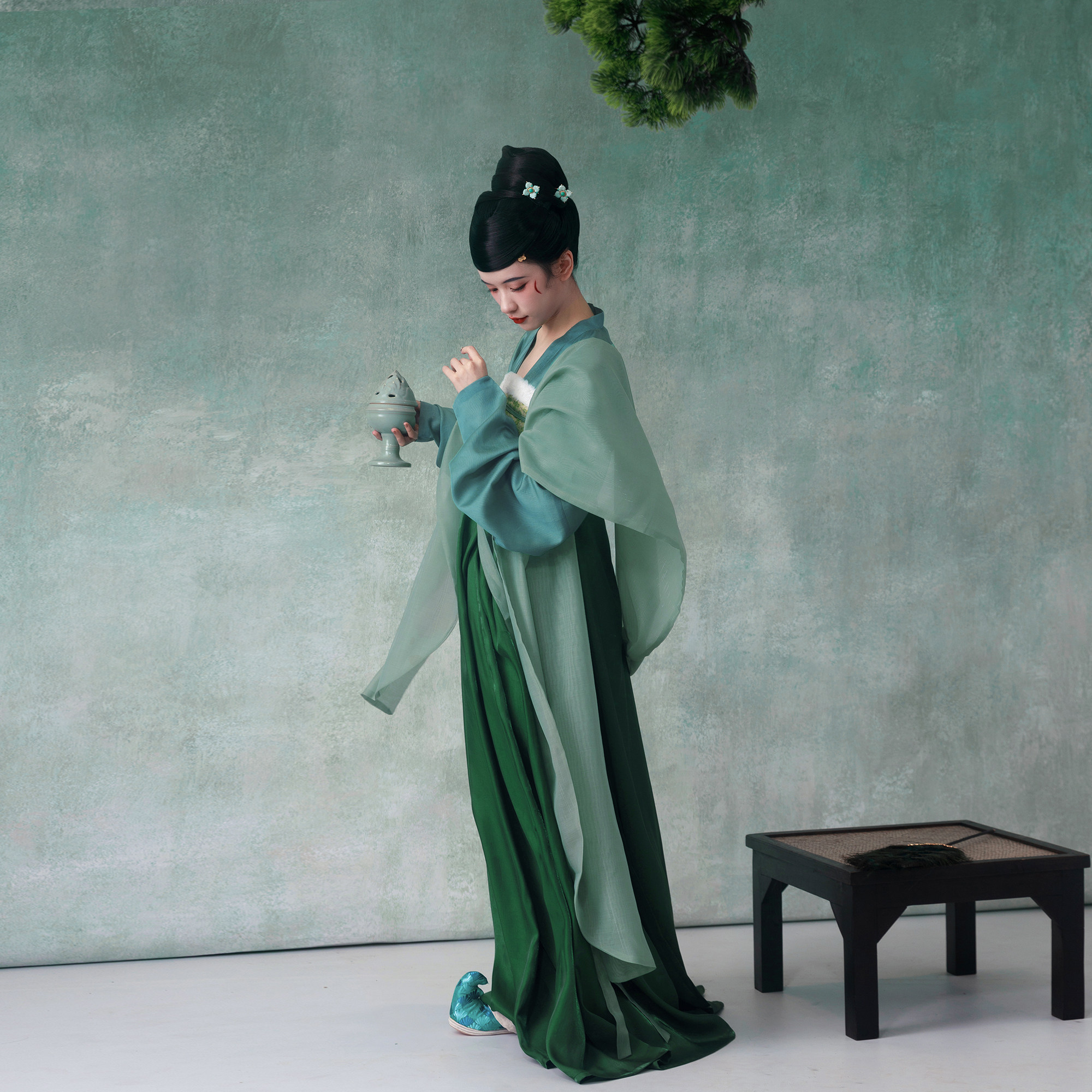 斜襟长衫 汉洋折衷套装 马面裙显瘦清新紫色蓝色 春水如兰 醉时阁