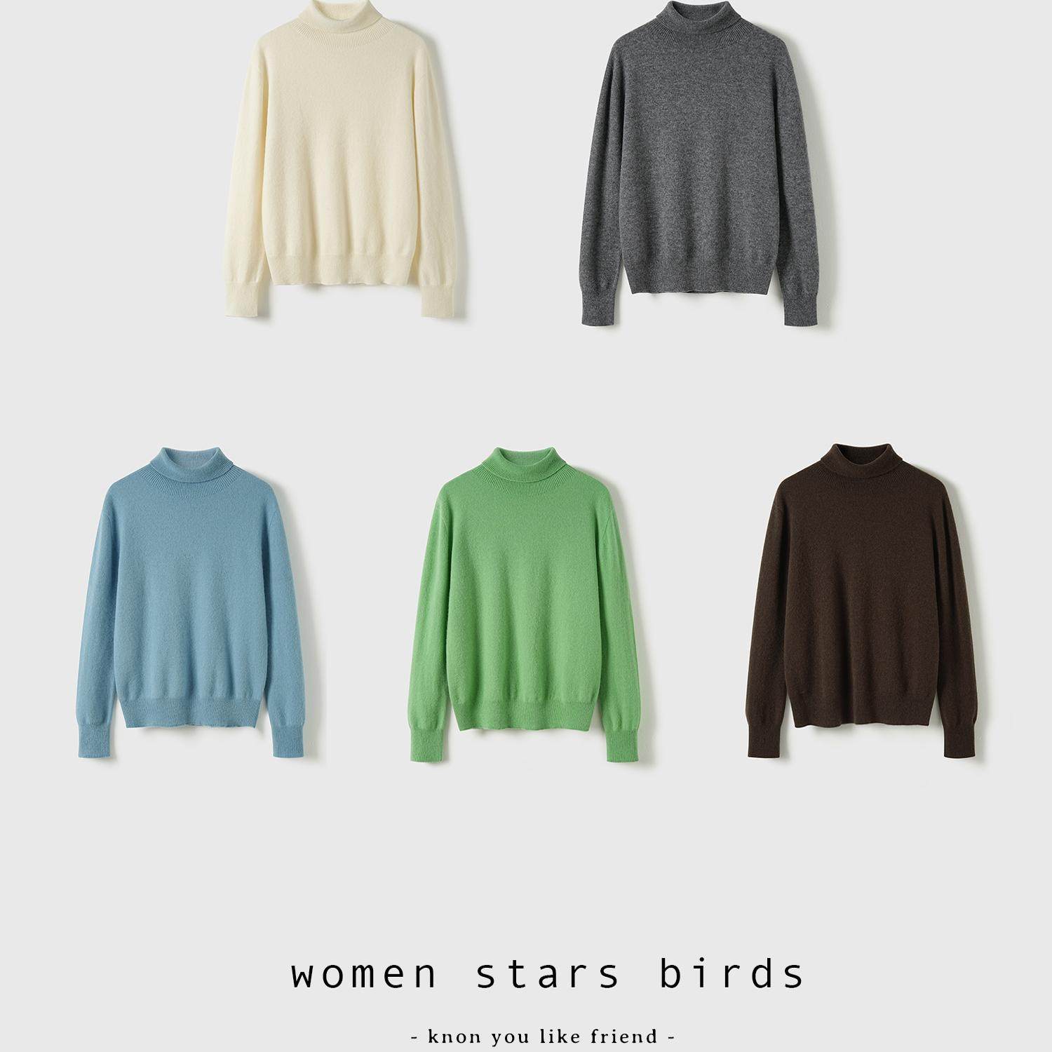螺纹领羊毛舒适软糯打底衫 birds无缝一体工艺卷边领 stars women