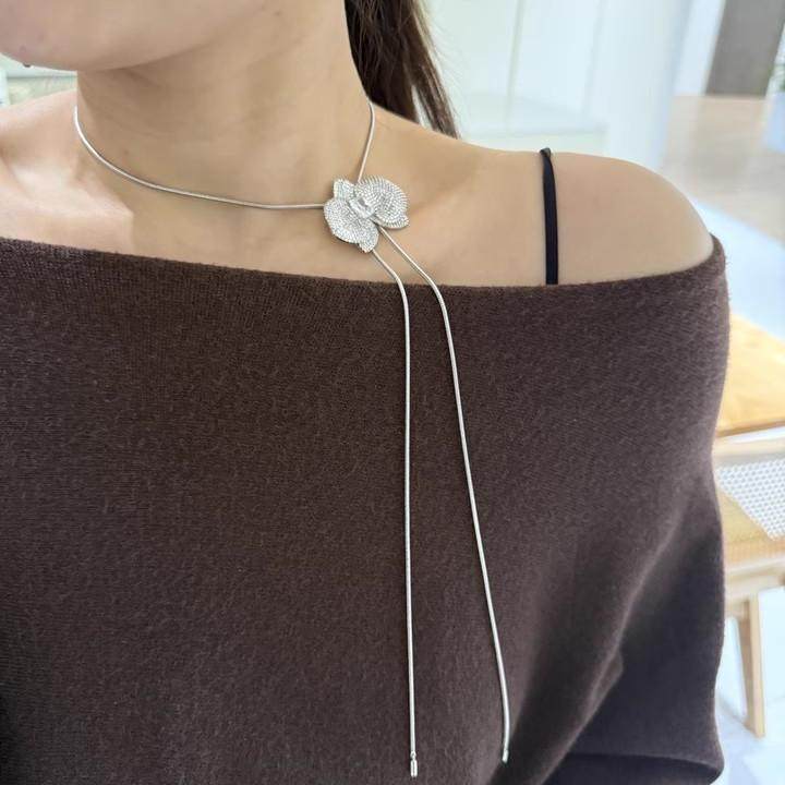 高级感花朵吊坠串珠项链女款 锁骨链轻奢小众精致颈链配饰 2025新款
