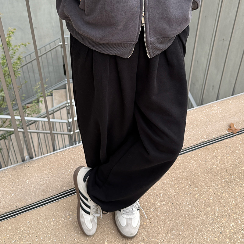 橘子树在哪儿复古加绒休闲裤 女秋冬慵懒风保暖显瘦百搭松紧腰卫裤