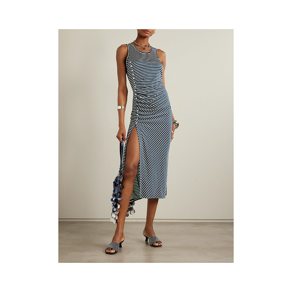 不对称褶皱条纹弹性针织中长连衣裙 女士 1h可退 香港直邮Rabanne