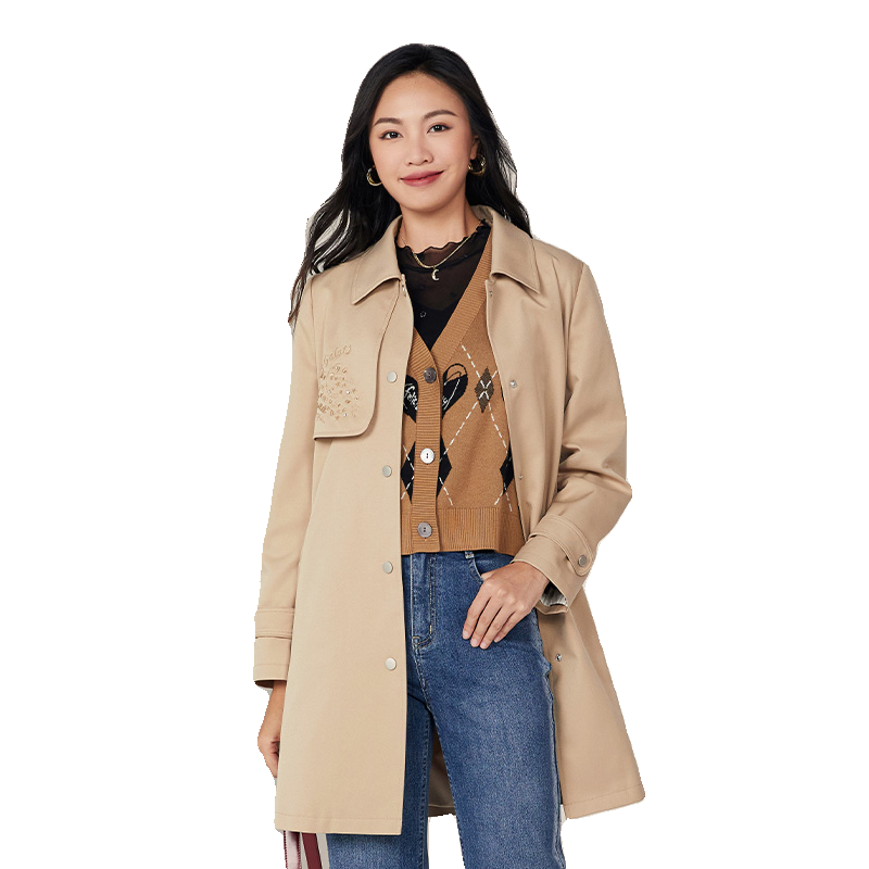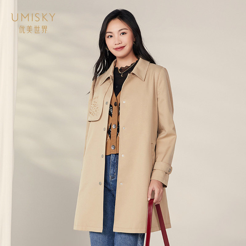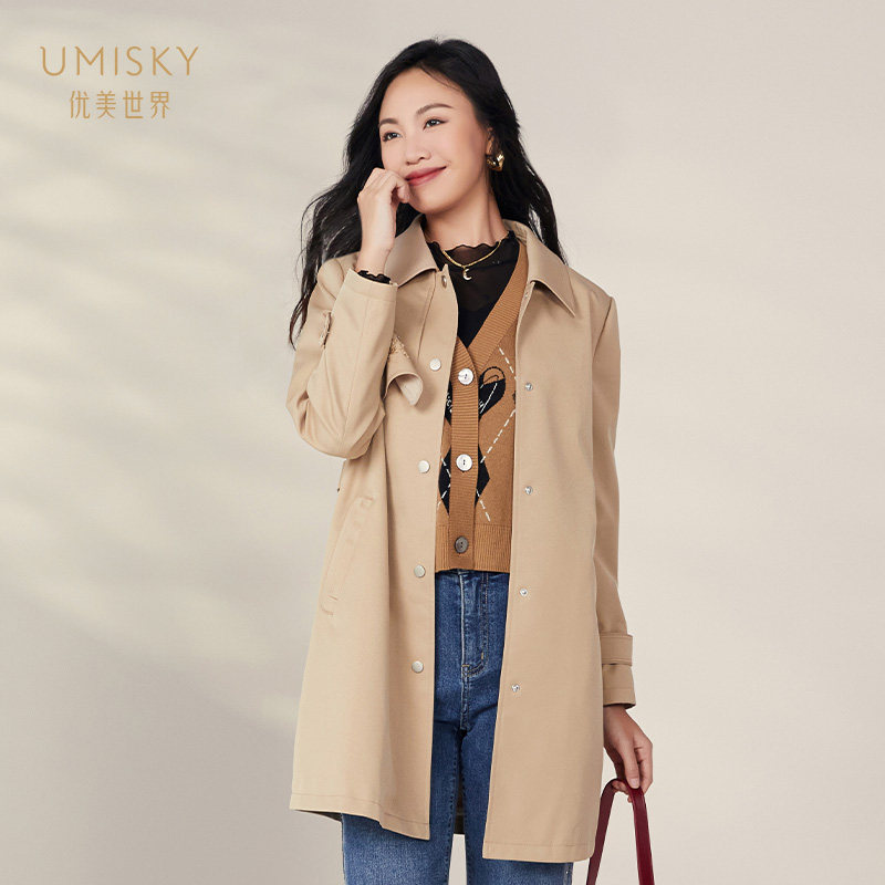 英伦风系带2026春季 廓形气质风衣外套女中长款 经典 范洛Fano